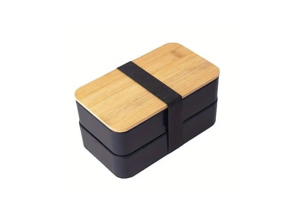 Lunch Box DUO LUNCH z sztućcami, czarny/bambus.