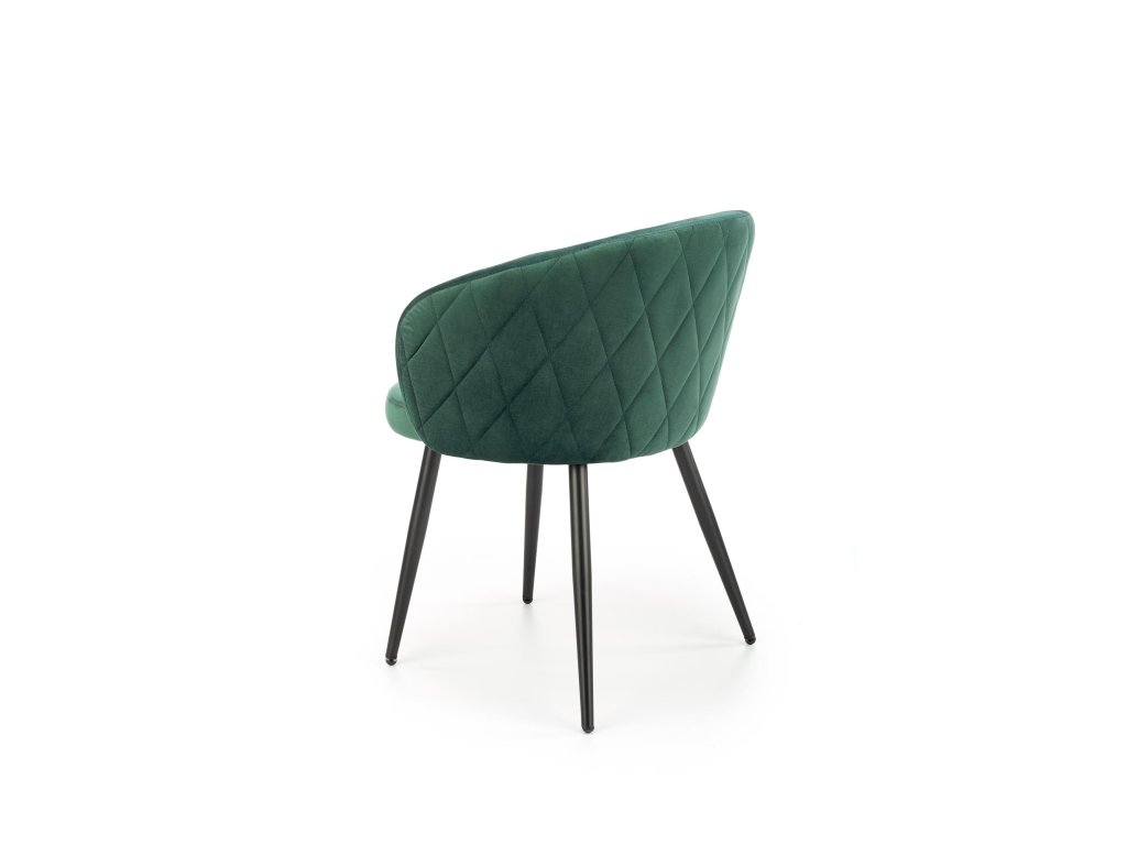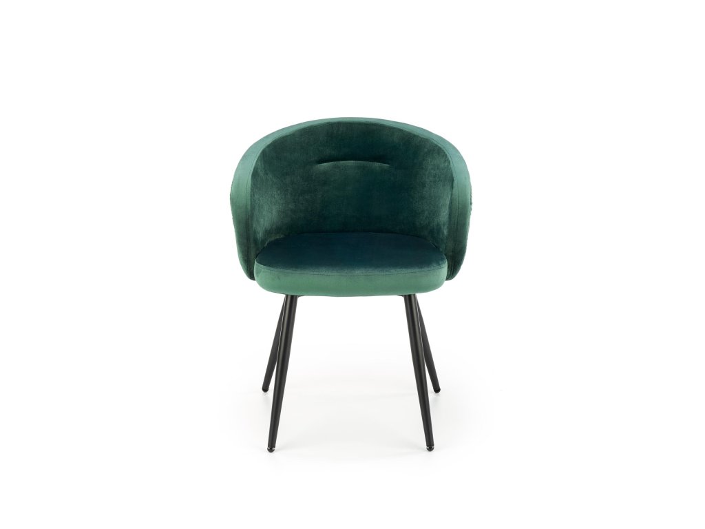 Styl skandynawski charakteryzuje się delikatnymi odcieniami kolorów, naturalnymi materiałami i dużą ilością światła. Stwórz atmosferę północnej Europy we własnym domu. Wnętrze oparte na gładkich powierzchniach, czystych liniach i wyrazistym oświetleniu jest harmonijne i ponadczasowe. Skandynawska jadalnia nie obejdzie się bez masywnych lub tapicerowanych krzeseł oraz solidnego stołu. Aksamitnie miękkie krzesło jadalniane K430 w zielonym kolorze stanie się stylowym i wygodnym dodatkiem. Neutralne odcienie łatwo składają się z metalowym stołem i innymi dodatkami. Dzięki kształtowi w stylu fotela krzesło zapewnia wysoki komfort siedzenia. Nie obawiaj się łączyć różnych odcieni krzeseł przy jednym stole i nadaj swojej jadalni unikalny charakter.
