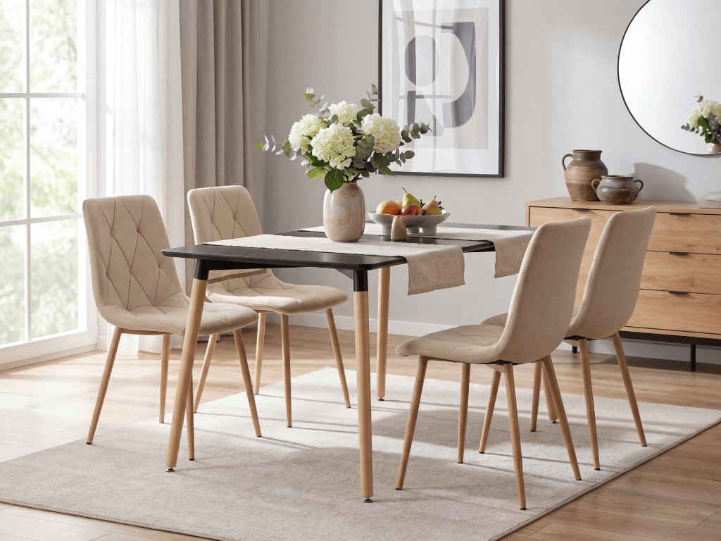 Neutralne kolory stanowią doskonałą podstawę dla każdego wnętrza. Mieszając neutralne tony z jednym wyrazistym kolorem, powstaje perfekcyjna przestrzeń. Zainspiruj się krajami skandynawskimi, które łączą delikatne barwy z naturalnymi materiałami. Skandynawskie jadalnie są pełne światła, świeżych ziół i są całkowicie funkcjonalne i praktyczne. Jasnobeżowe aksamitne krzesło jadalniane LIBRA stanie się ozdobą jadalni. Uzupełnij je o jasny stół z drewna. W jadalni postaw na stonowane dodatki, które są użyteczne. Wybierz również lniane wiszące donice, do których umieścisz zimozielone rośliny czy zioła.