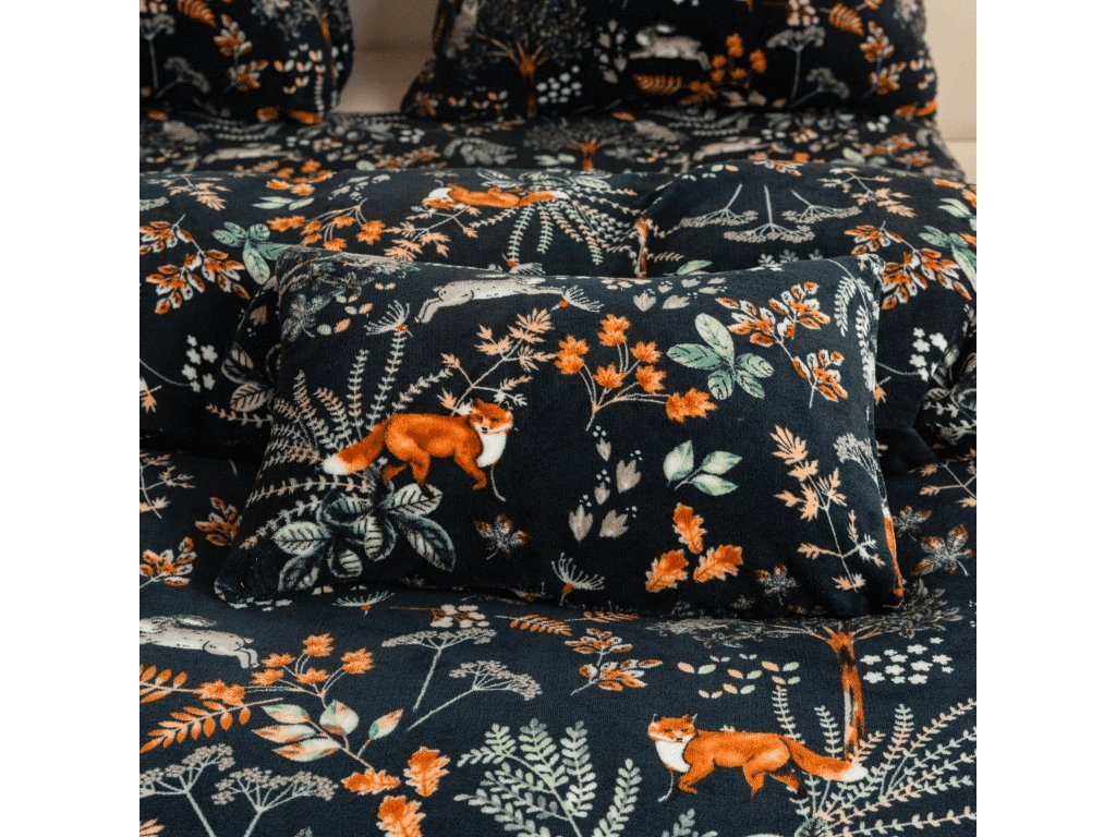 Zestaw pościeli z mikropluszu LIS I ZAJĄC ciemnozielone + prześcieradło z mikropluszu SOFT 180x200 cm białe, podwójne łóżko