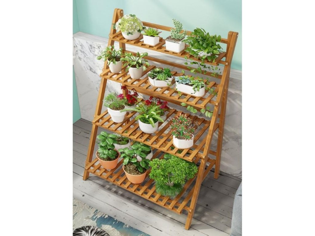 Składany bambusowy regał na kwiaty NEPEL 122x70 cm