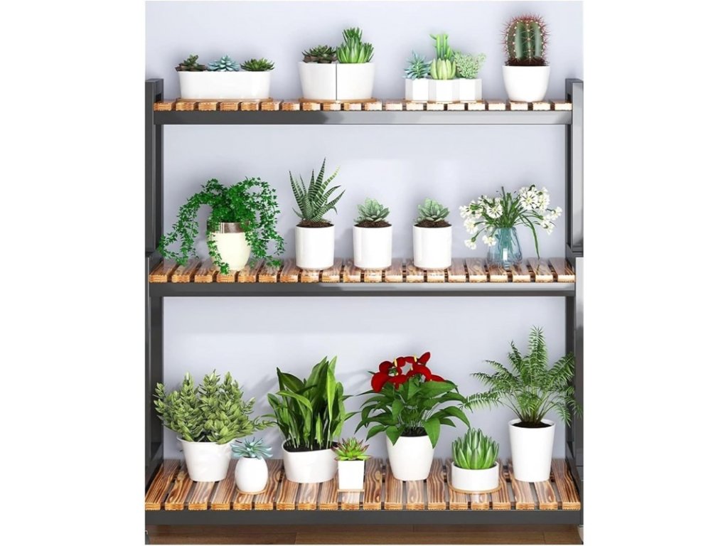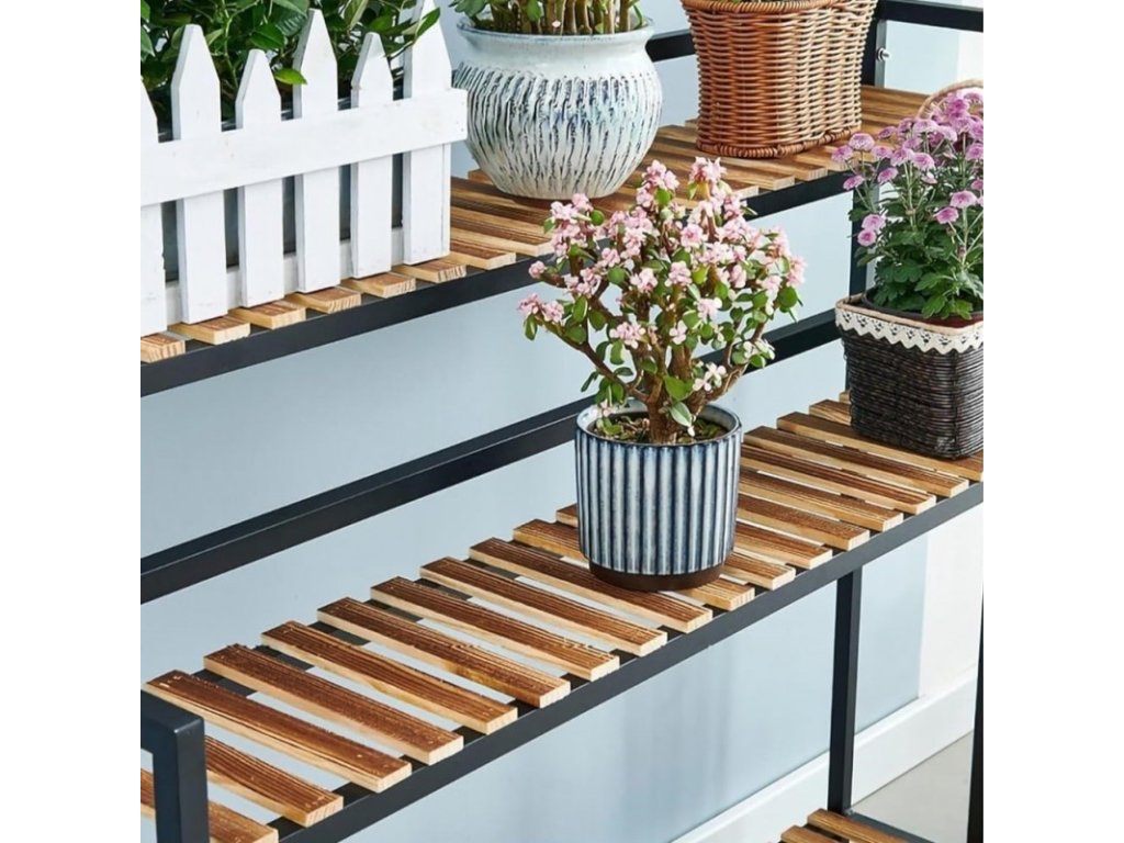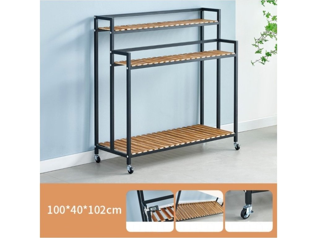 Stojak na kwiaty z 3 półkami FLOREXA 100x40x102 cm, czarny