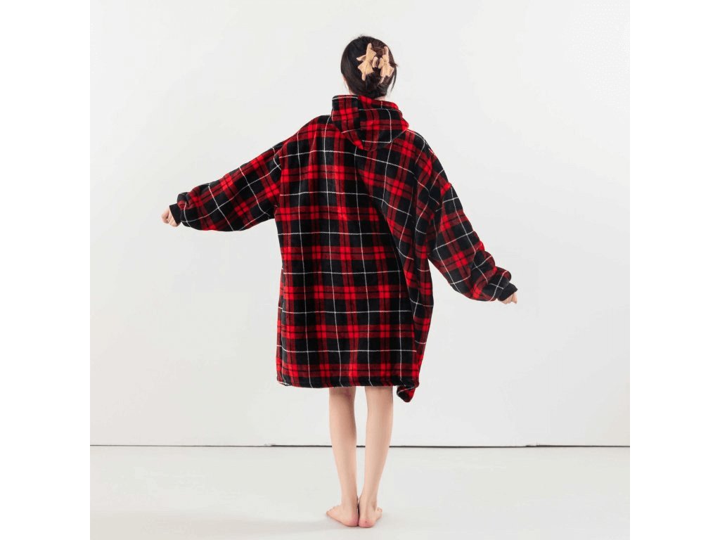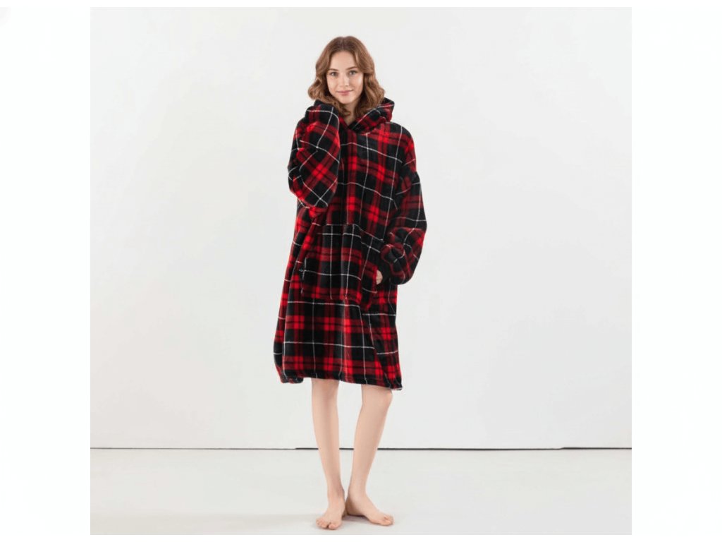 Koc bluza z baranka z rękawami i kapturem ALBURY, czerwony