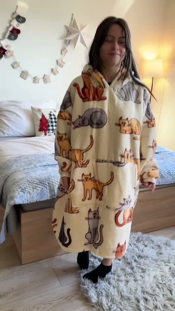 Koc bluza z baranka z rękawami i kapturem COLORED CATS kremowy