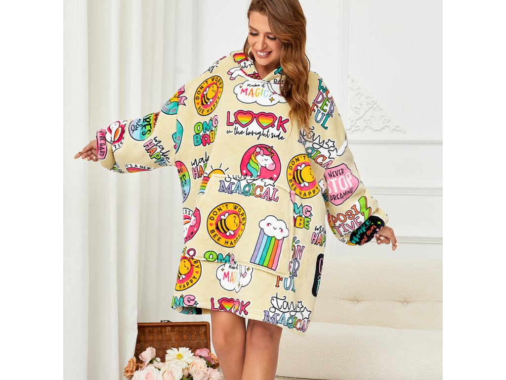 Koc bluza z baranka z rękawami i kapturem MAGICAL kremowa