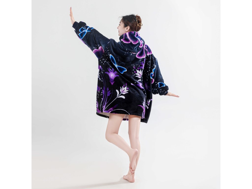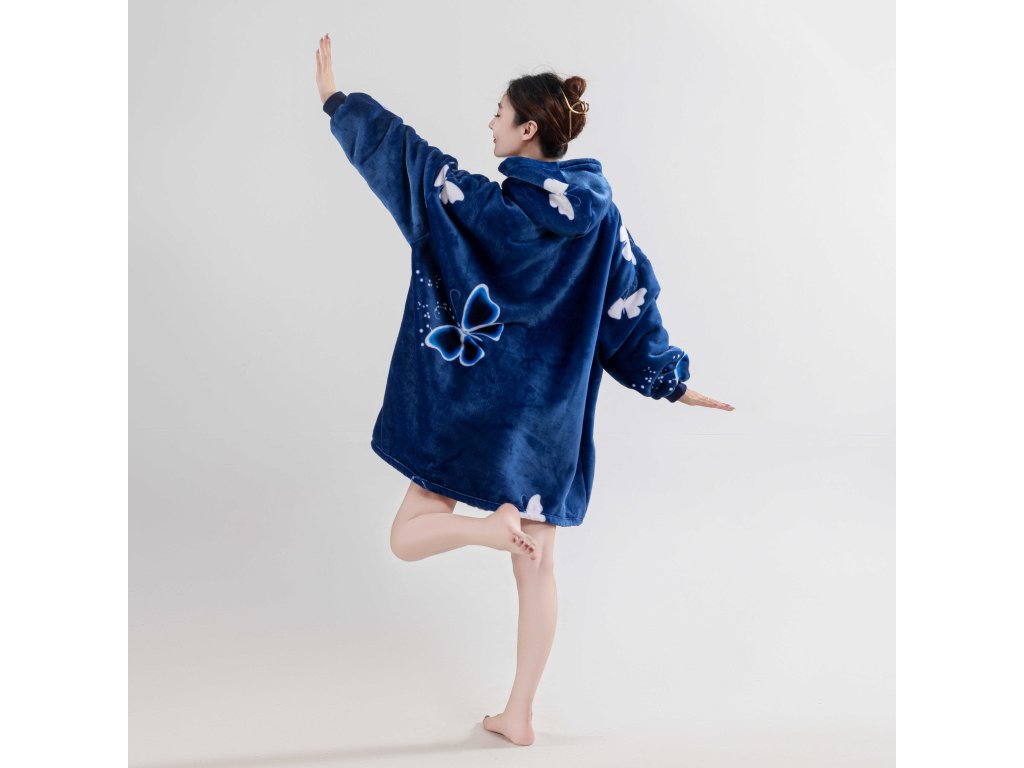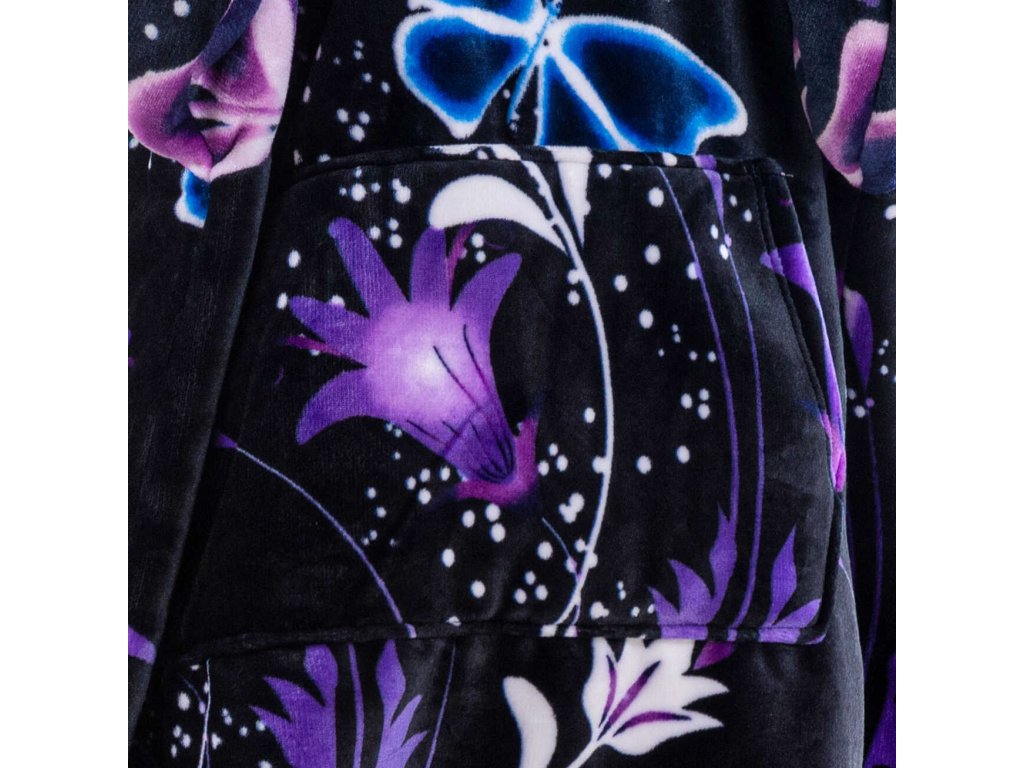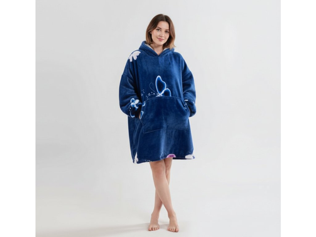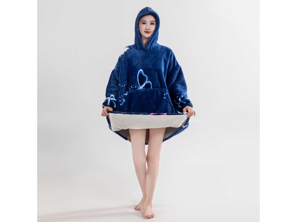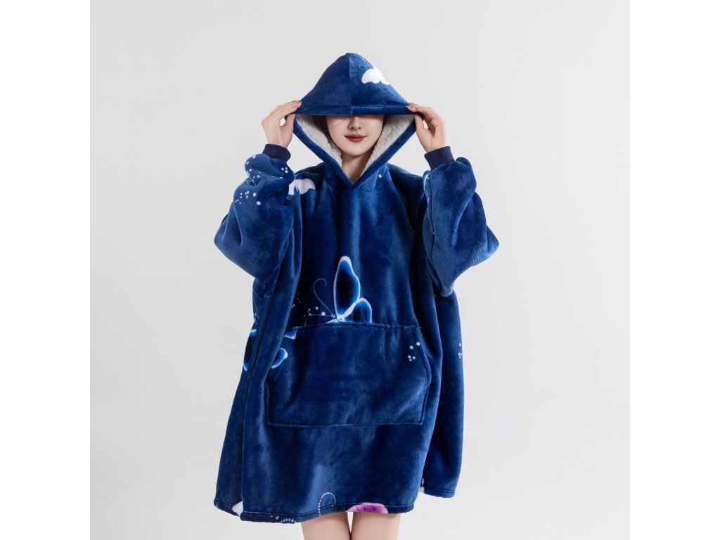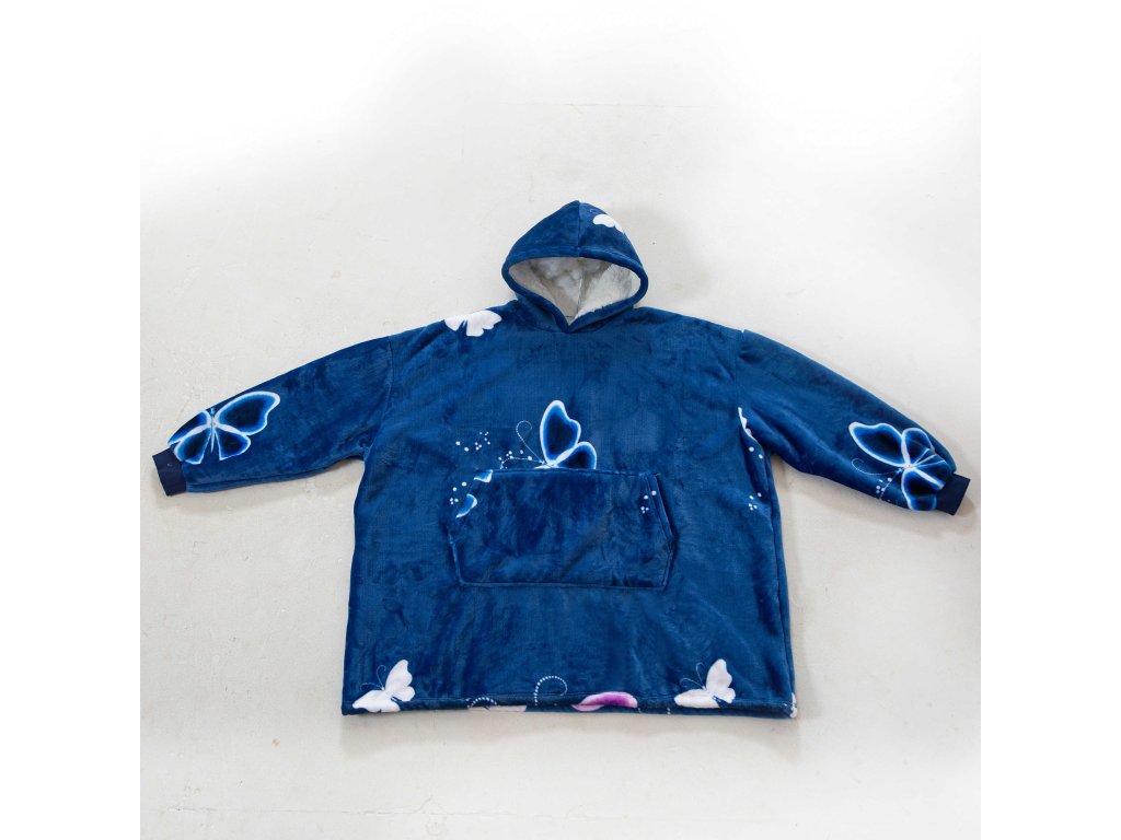 Bluza z baranka z rękawami i kapturem VIOLET BUTTERFLY ciemnoniebieska