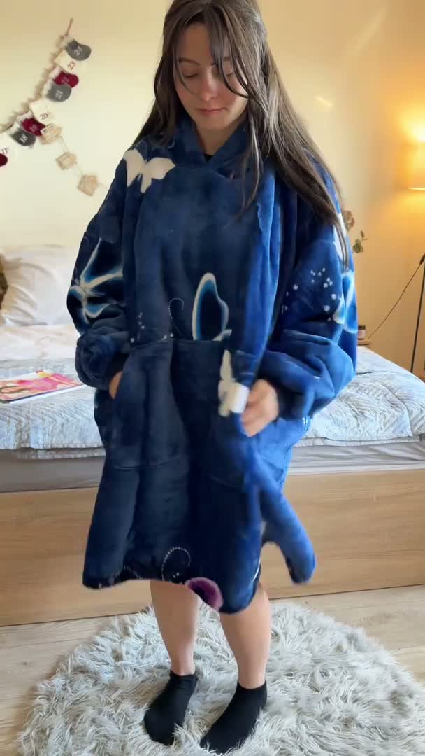 Koc bluza z baranka z rękawami i kapturem VIOLET BUTTERFLY, ciemnoniebieski