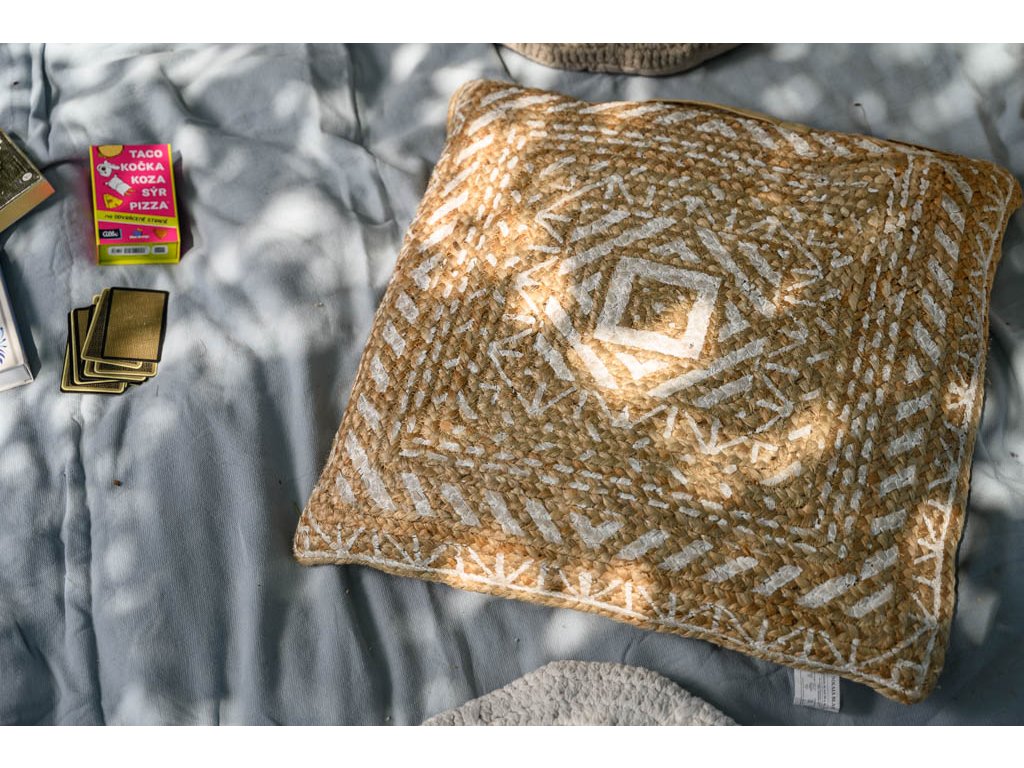 - Wzorzysta poduszka podłogowa to idealny i praktyczny dodatek do wnętrza
