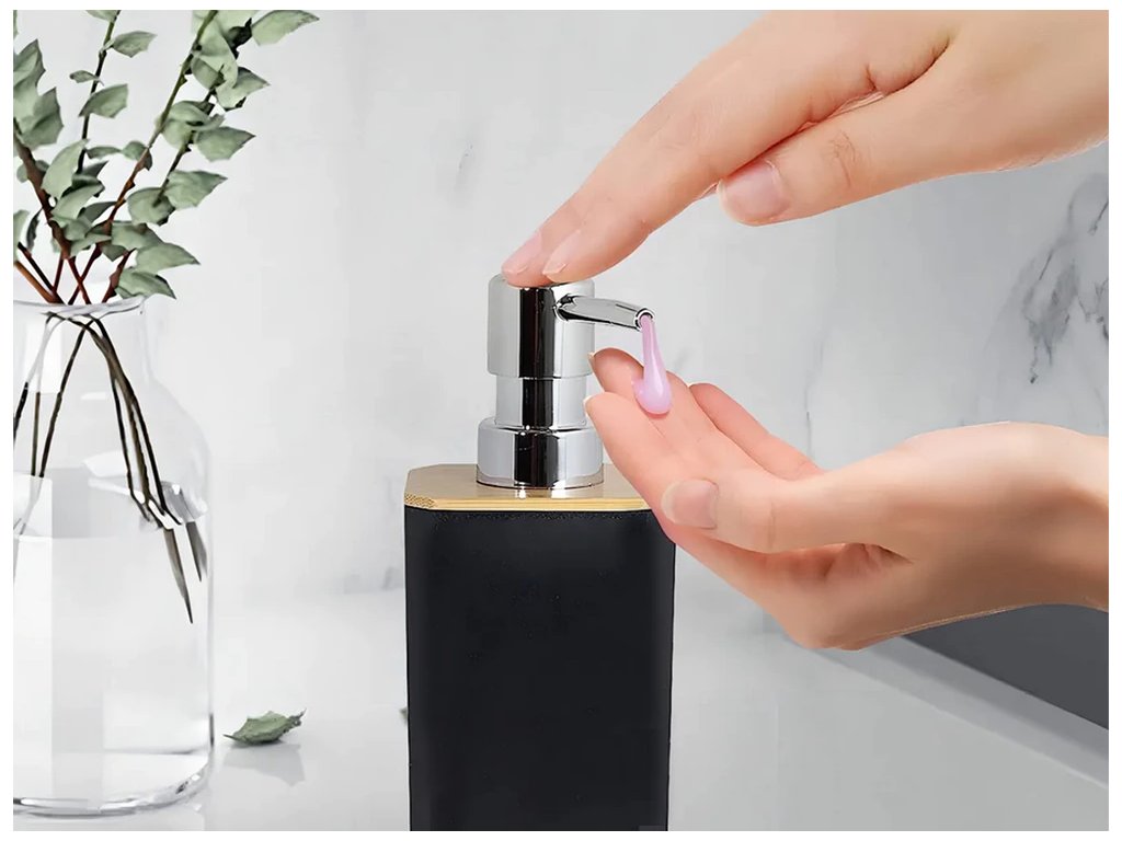 - Dozownik na mydło w płynie - pojemność 300 ml, z bambusowym wierzchem