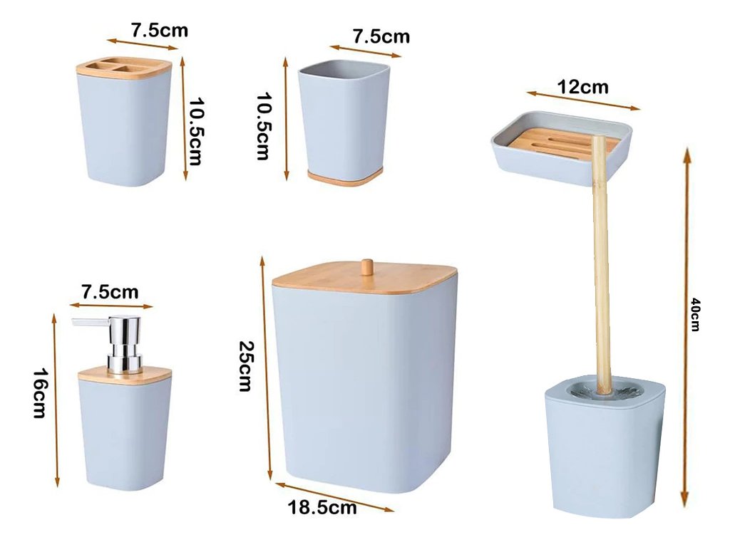 Plastowy zestaw łazienkowy BATHINO 6 sztuk - różne kolory