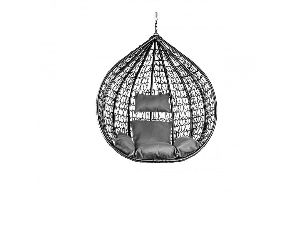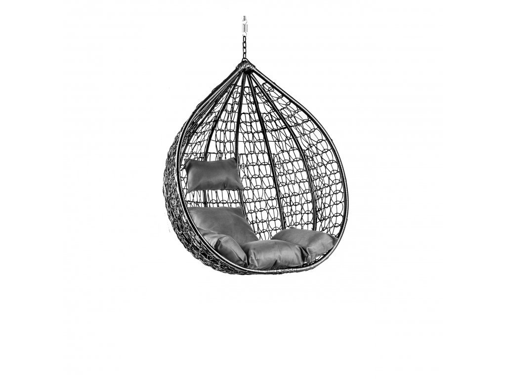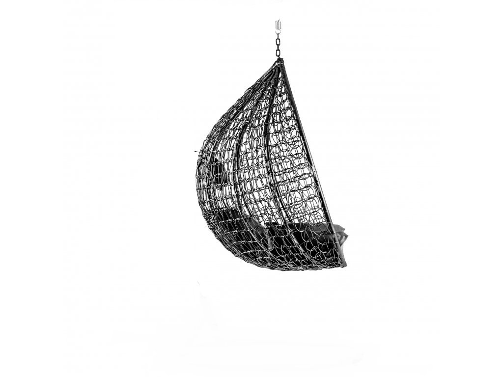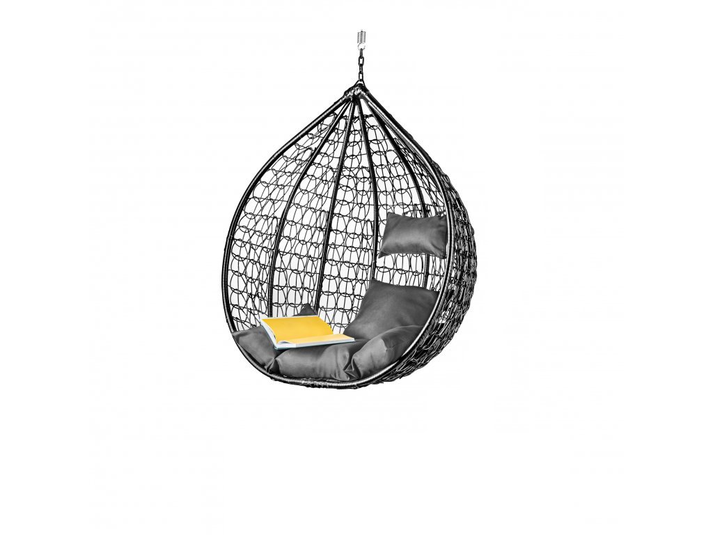 Czarne wiszące krzesło KOKON bez stojaka, szara poduszka