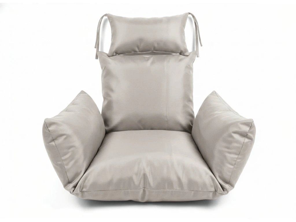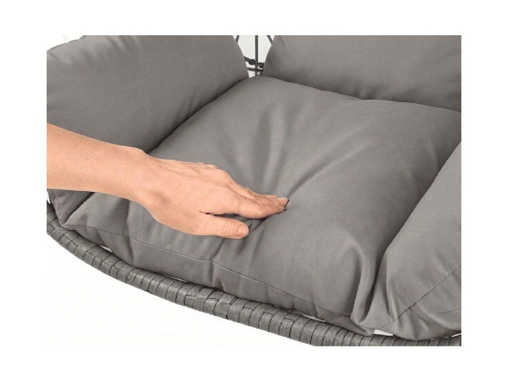 Szare wiszące krzesło KOKON ze stojakiem, jasna poduszka