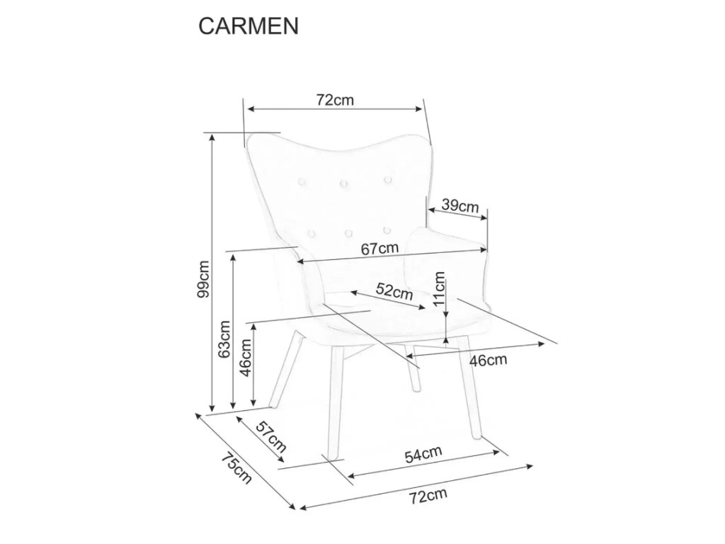 - Głębokość siedziska: 52 cm