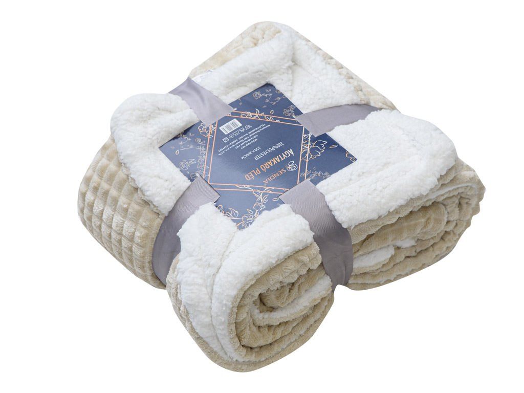 Lusztusowy mikropluszowy kocyk baranek z kostkami, 180x200 cm beżowy