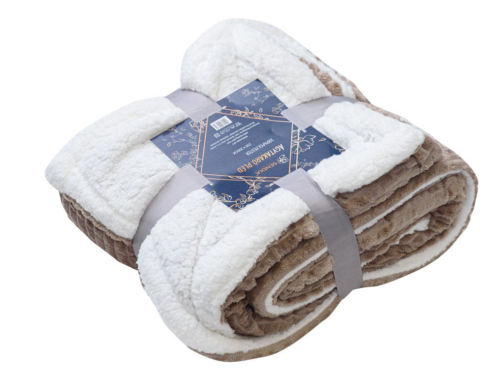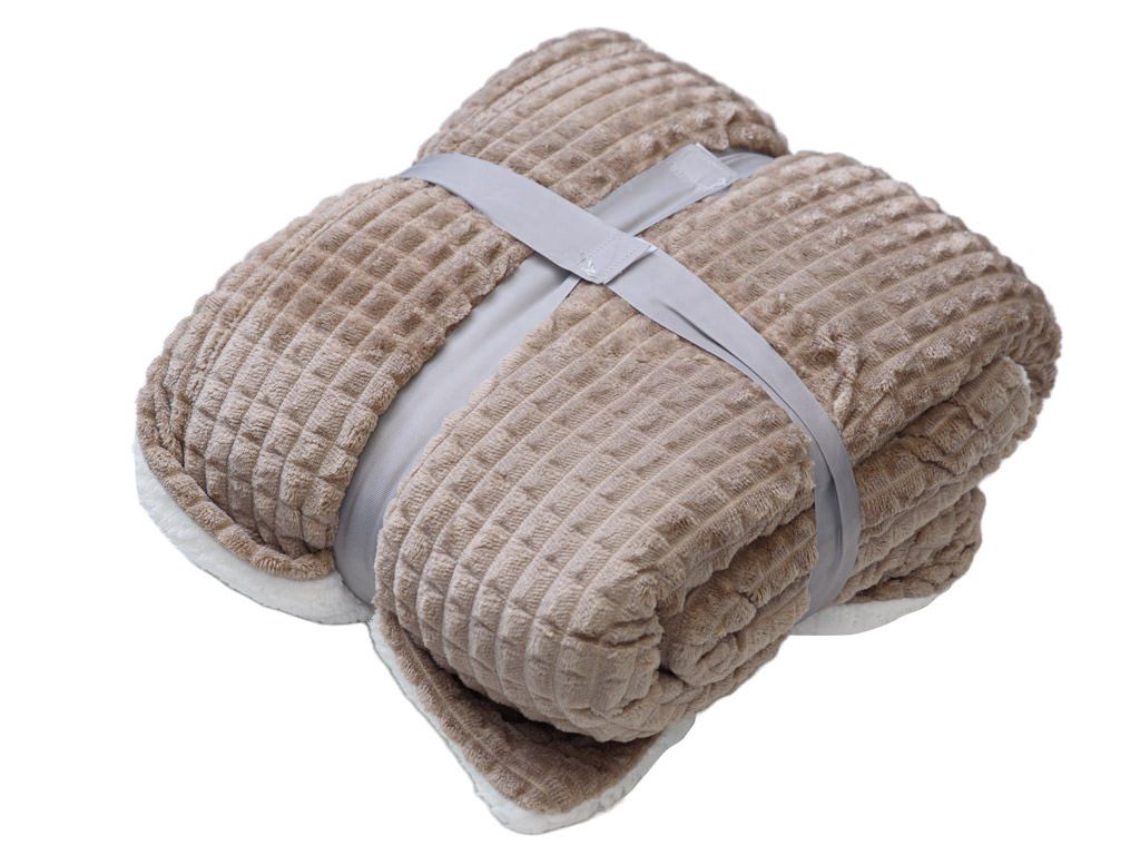 Lusztusowy mikropluszowy kocyk baranek z kostkami, 180x200 cm jasnobrązowy
