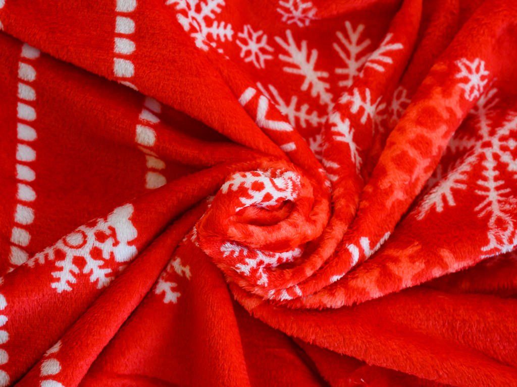 Koc świąteczny z mikroplusze PŁATEK ŚNIEGU, 180x200 cm czerwony