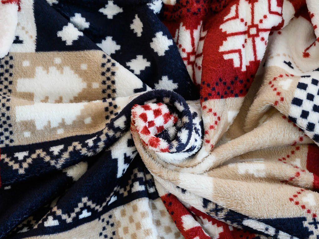 Koc z mikrofibry świąteczny KOLOROWE ŚWIĘTA, 180x200 cm kremowy