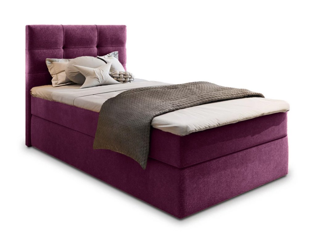 Tapicerowane łóżko kontynentalne GLORIEN 100x200 cm purpurowe