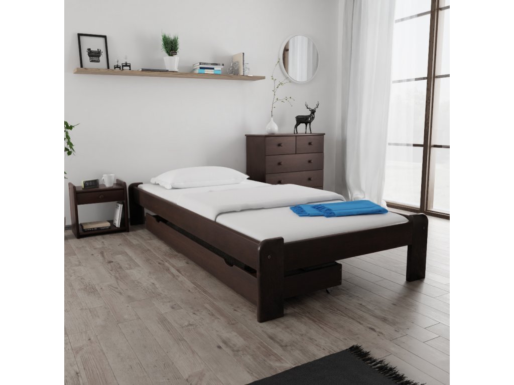 Dla miłośników ciemniejszych odcieni idealny jest dekor orzechowy. Łóżka w kolorze orzecha przypominają kolor gorzkiej czekolady. Wnętrze sypialni wygląda dominująco i gustownie. Kontrast jasnego wnętrza w kremowych lub białych odcieniach z łóżkiem w naturalnym kolorze orzecha daje nowoczesny efekt.