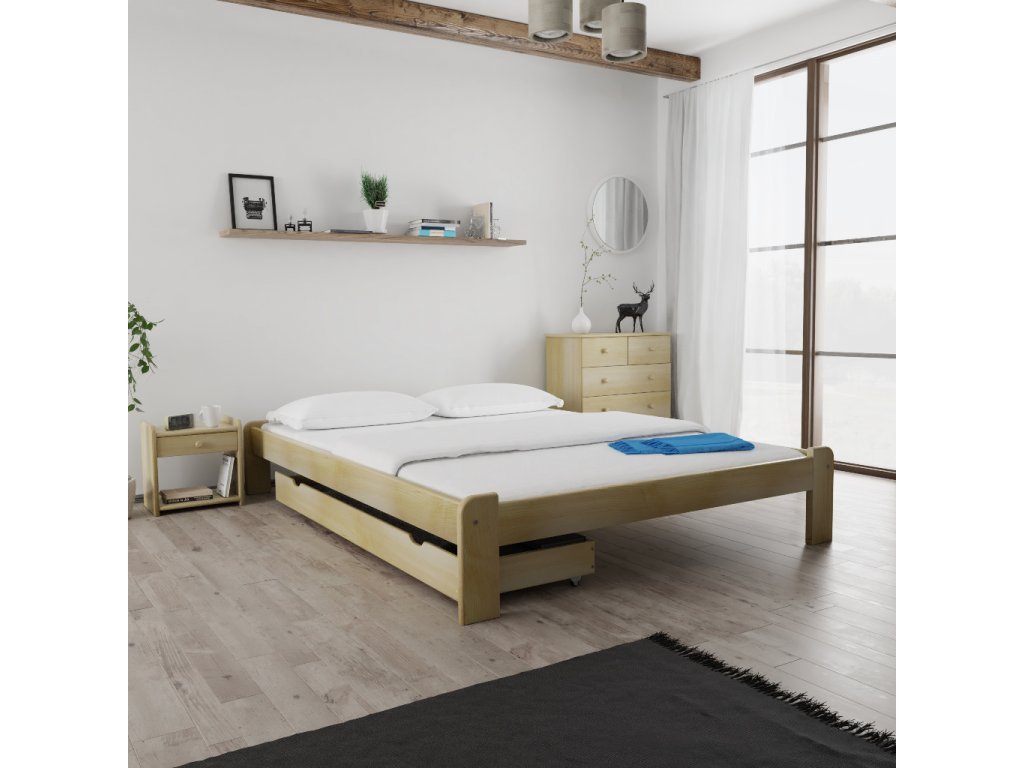 Łóżko w sosnowym dekorze rozświetli Twoją sypialnię i całe jej wnętrze. Drewno w kolorze sosny oferuje piękny wygląd z charakterystycznym rysunkiem słojów w kolorach od kremowego do czerwonawego. Lita sosna oferuje prosty wygląd, który pasuje do wszystkich sypialni, domków i pensjonatów. Małe sęki wyglądają naturalnie i nadają łóżku prawdziwego charakteru natury.