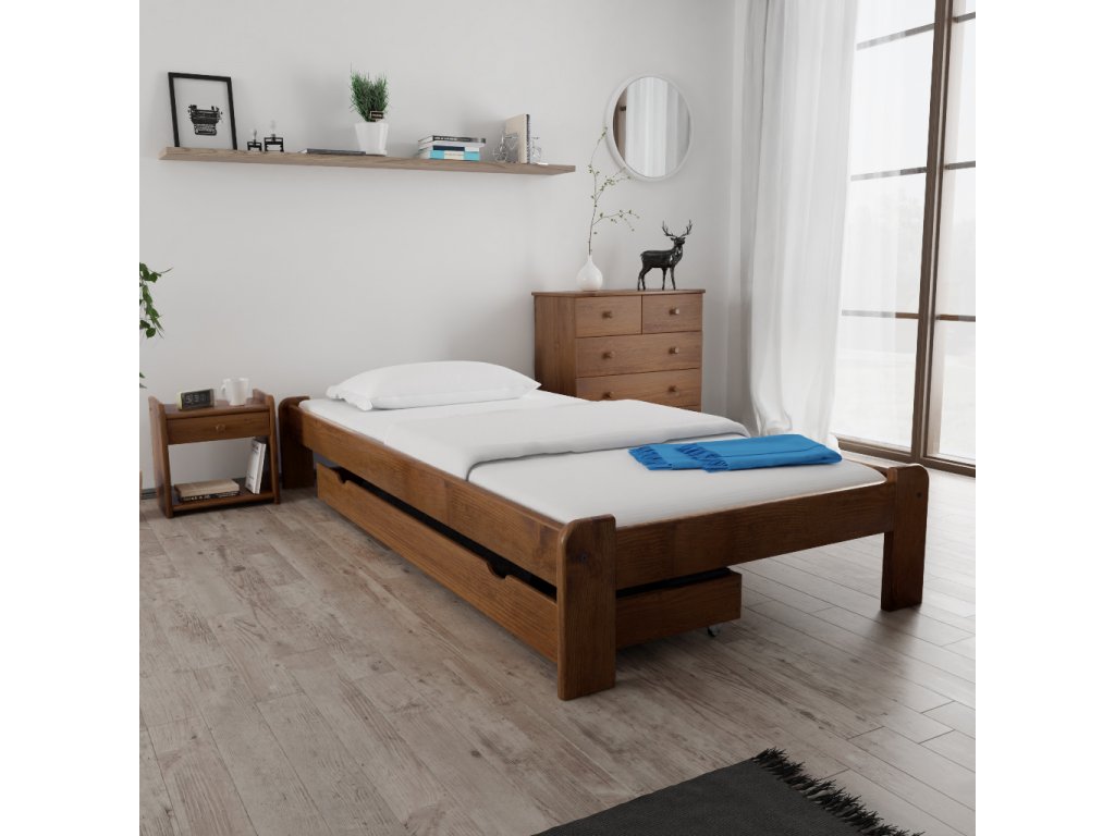 Łóżko pojedyncze o wymiarach 80 x 200 cm najczęściej znajduje zastosowanie w pokojach dziecięcych lub akademikach. Ze względu na szerokość 80 cm jest bardziej odpowiednie dla mniej wymagających osób i dzieci. Oszczędza również miejsce, dzięki czemu nadaje się do mniejszych sypialni lub pokoi. Jeśli chcesz rozwiazać również problem przestrzeni w małej kawalerce, to łóżko będzie świetnym wyborem, dodatkowo możesz skorzystać z wysuwanego schowka pod łóżkiem.