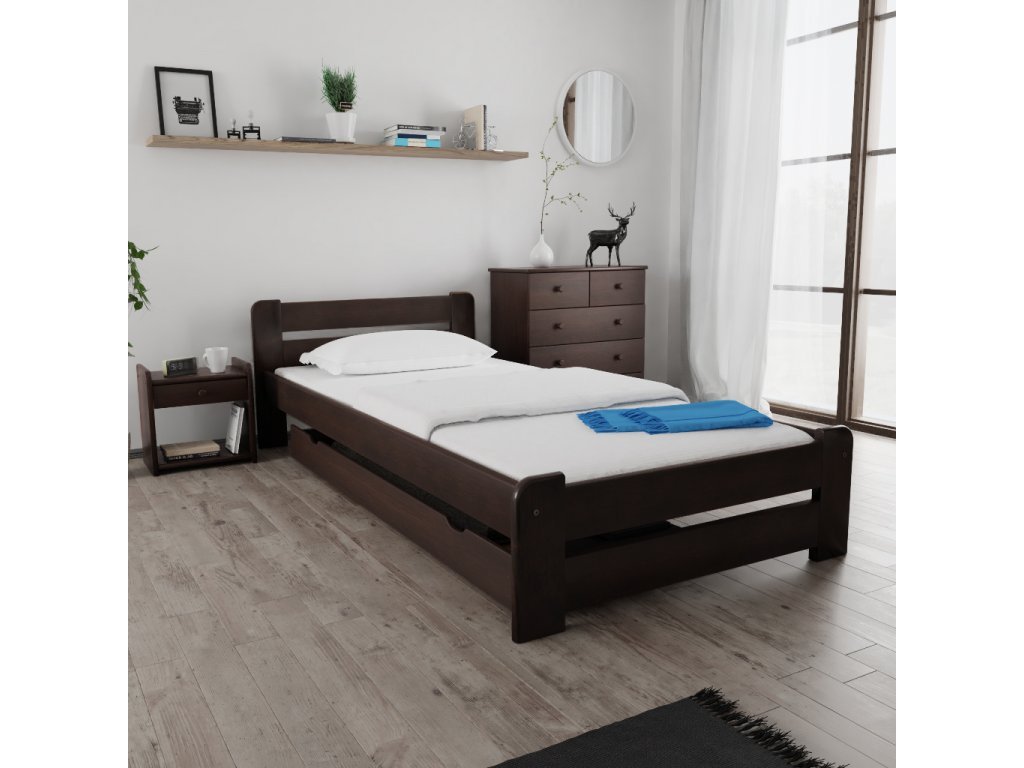 Dla miłośników ciemniejszych odcieni idealny jest dekor orzechowy. Łóżka w kolorze orzecha przypominają kolor gorzkiej czekolady. Wnętrze sypialni wygląda dominująco i gustownie. Kontrast jasnego wnętrza w kremowych lub białych odcieniach z łóżkiem w naturalnym kolorze orzecha daje nowoczesny efekt.