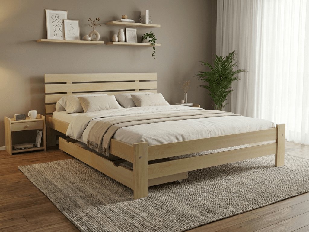 Wysokiej jakości łóżka z litego drewna najczęściej wykonywane są z drewna dębowego, bukowego lub sosnowego, czyli sprawdzonego od lat materiału. Wraz z solidną konstrukcją łóżko ma długą żywotność bez śladów uszkodzeń. Łóżka z litego drewna posiadają klasyczną ramę lub szkielet łóżka oraz stelaż. Przestrzeń do przechowywania w tym samym designie to dziś duży bonus. Łóżka z litego drewna są mocne, trwałe i bezpieczne dla zdrowia.