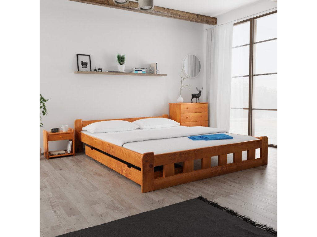 Wysokiej jakości łóżka z litego drewna najczęściej wykonywane są z drewna dębowego, bukowego lub sosnowego, czyli sprawdzonego od lat materiału. Wraz z solidną konstrukcją łóżko ma długą żywotność bez śladów uszkodzeń. Łóżka z litego drewna posiadają klasyczną ramę lub szkielet łóżka oraz stelaż. Przestrzeń do przechowywania w tym samym designie to dziś duży bonus. Łóżka z litego drewna są mocne, trwałe i bezpieczne dla zdrowia.