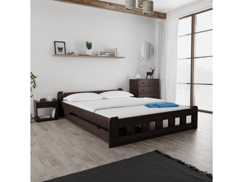 Dla miłośników ciemniejszych odcieni idealny jest dekor orzechowy. Łóżka w kolorze orzecha przypominają kolor gorzkiej czekolady. Wnętrze sypialni wygląda dominująco i gustownie. Kontrast jasnego wnętrza w kremowych lub białych odcieniach z łóżkiem w naturalnym kolorze orzecha daje nowoczesny efekt.