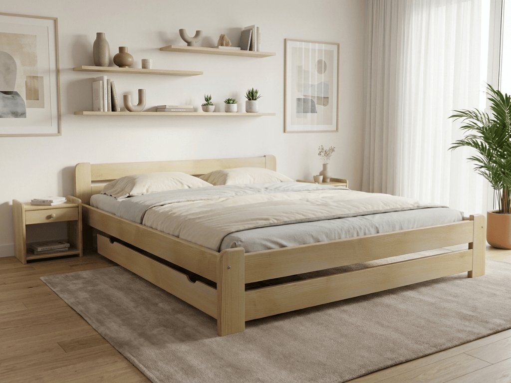 Wysokiej jakości łóżka z litego drewna najczęściej wykonywane są z drewna dębowego, bukowego lub sosnowego, czyli sprawdzonego od lat materiału. Wraz z solidną konstrukcją łóżko ma długą żywotność bez śladów uszkodzeń. Łóżka z litego drewna posiadają klasyczną ramę lub szkielet łóżka oraz stelaż. Przestrzeń do przechowywania w tym samym designie to dziś duży bonus. Łóżka z litego drewna są mocne, trwałe i bezpieczne dla zdrowia.