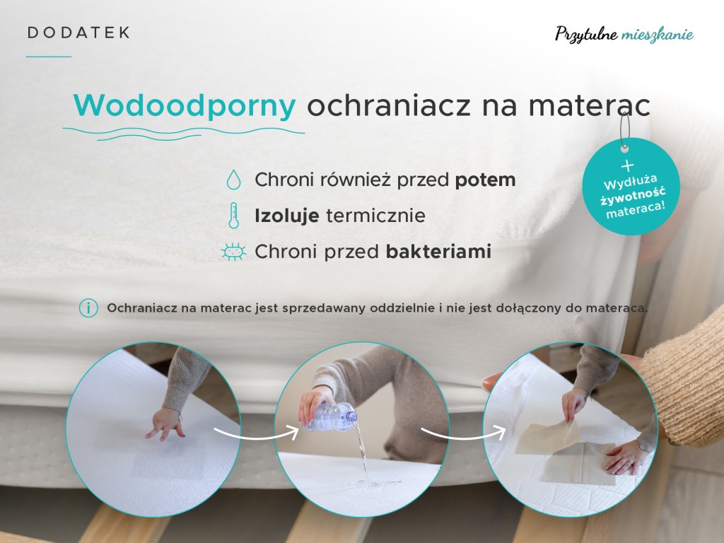 - Uzupełnij materac o jakościowy stelaż zapewniający właściwą cyrkulację powietrza