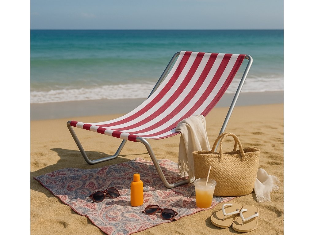 Składany leżak plażowy SAND, ciemnoróżowe paski