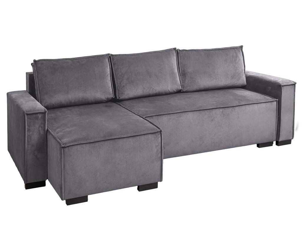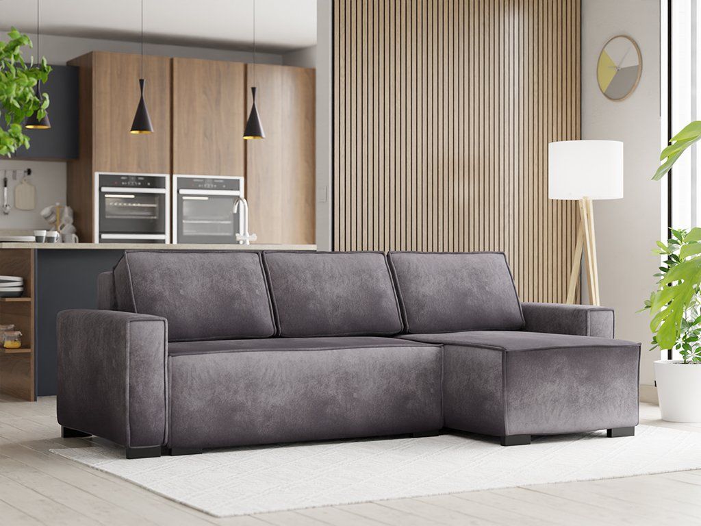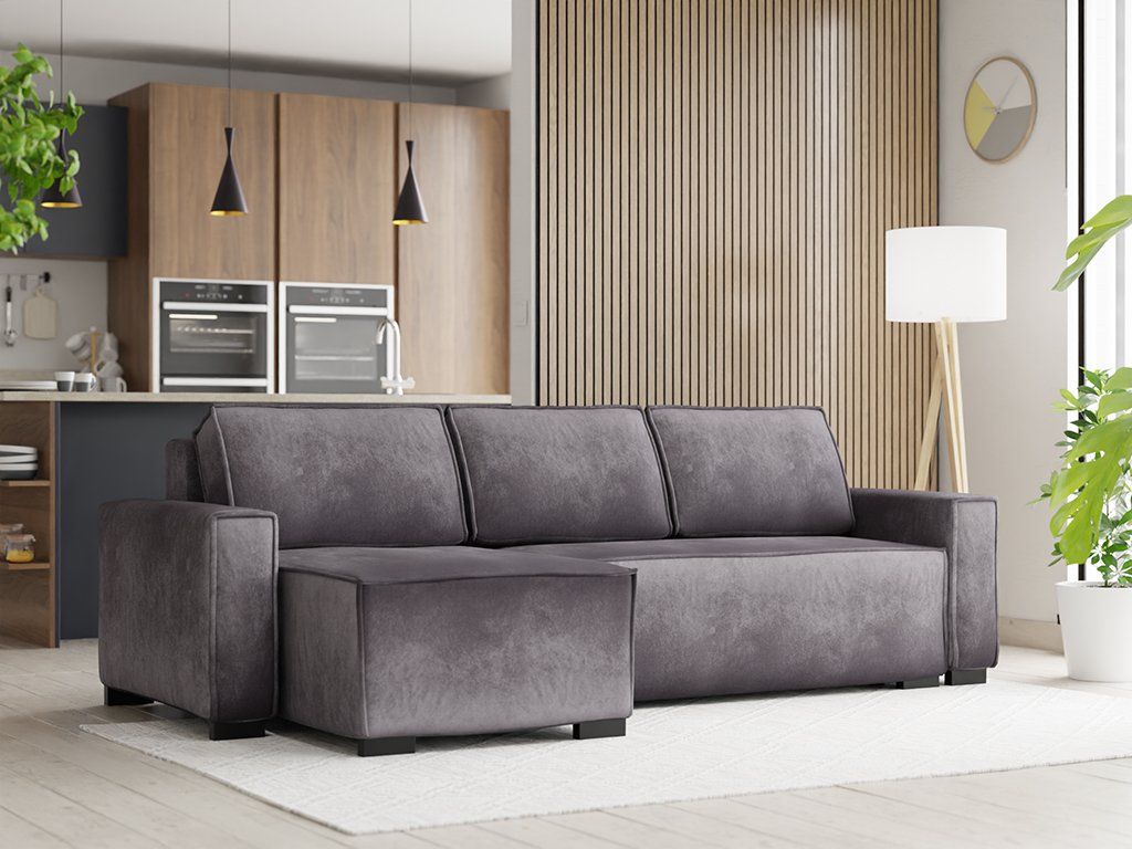 Szary rozkładany narożnik SMART VELVET, dwustronny