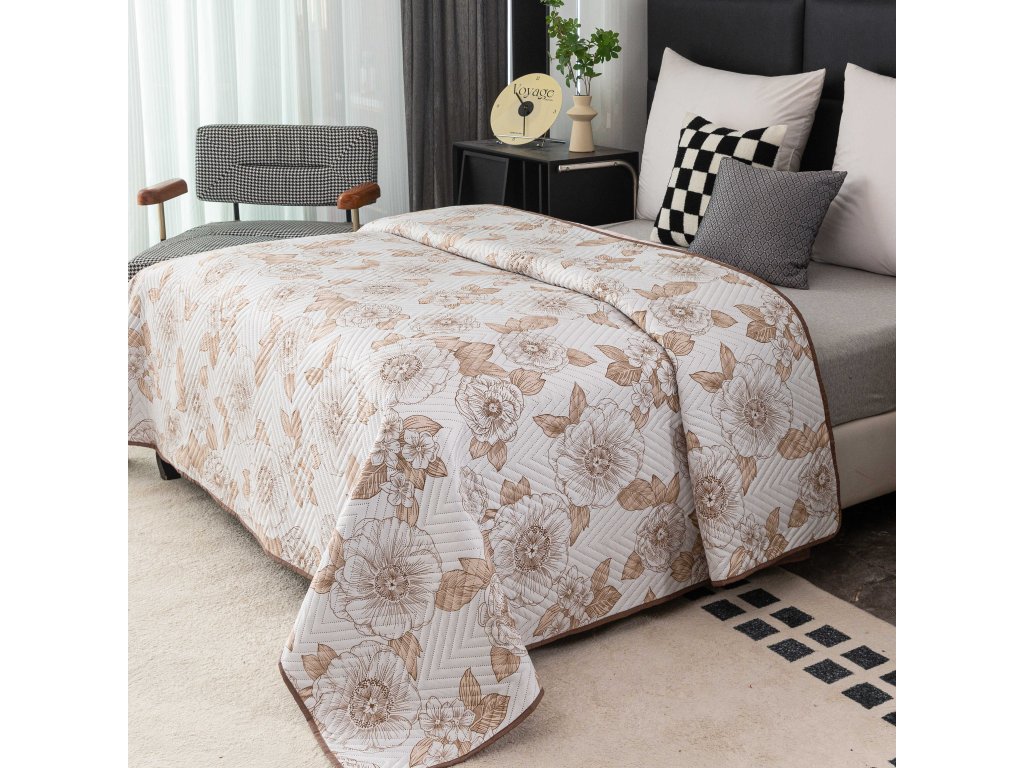Narzuta na łóżko PETALIS kremowy / brązowy