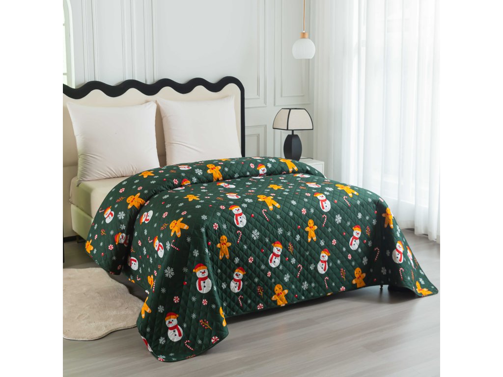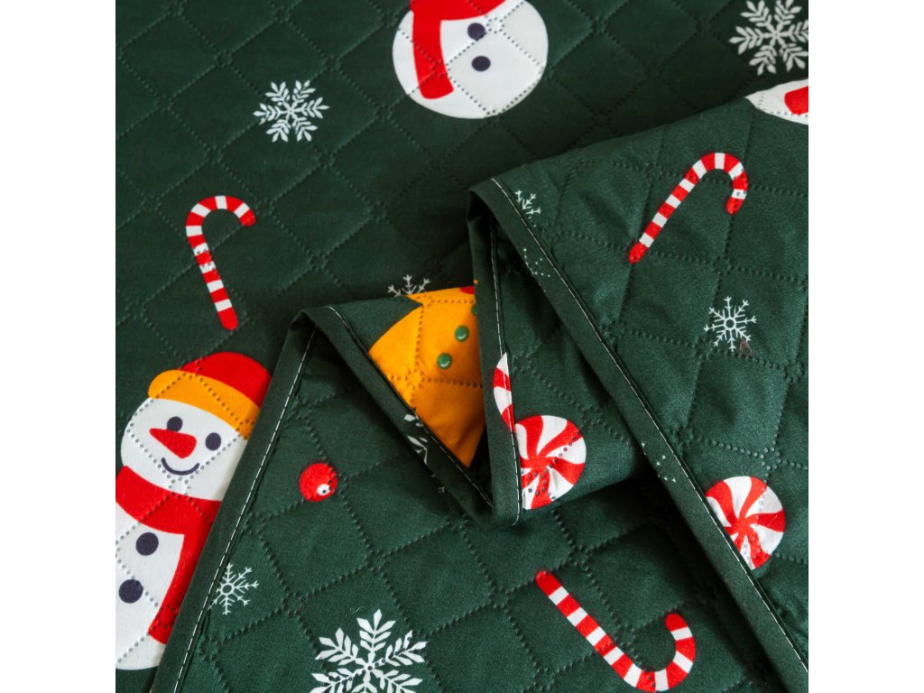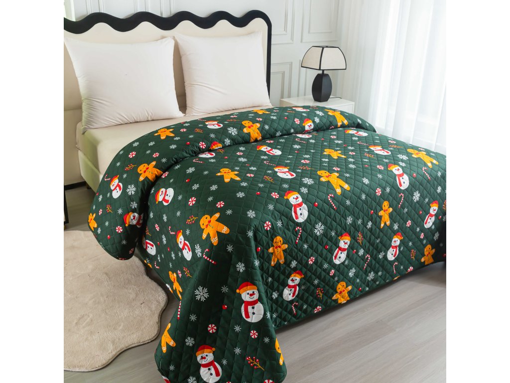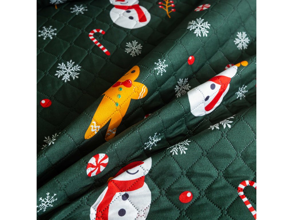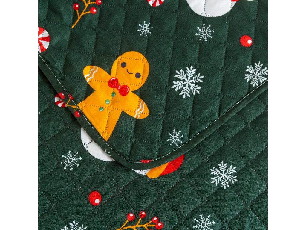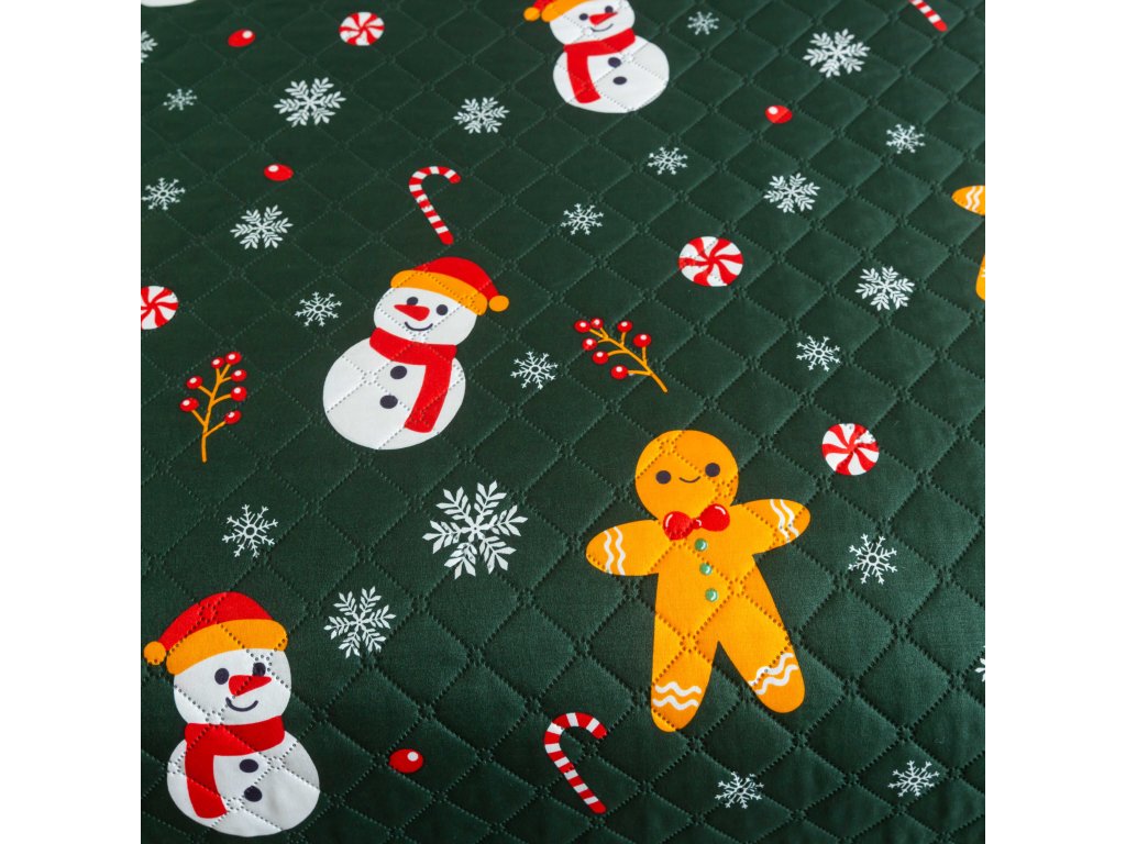 Narzuta na łóżko ze wzorem SNOWMAN AND GINGERBREAD, zielona