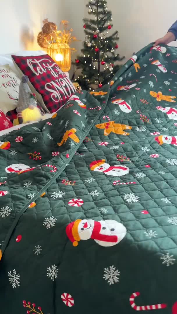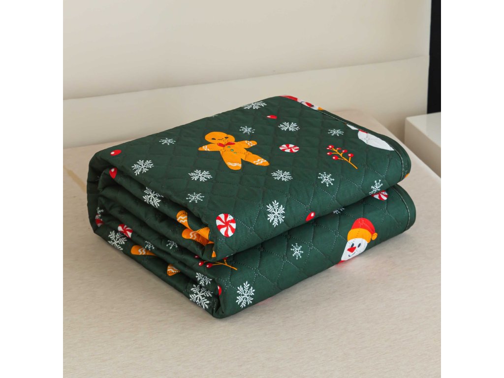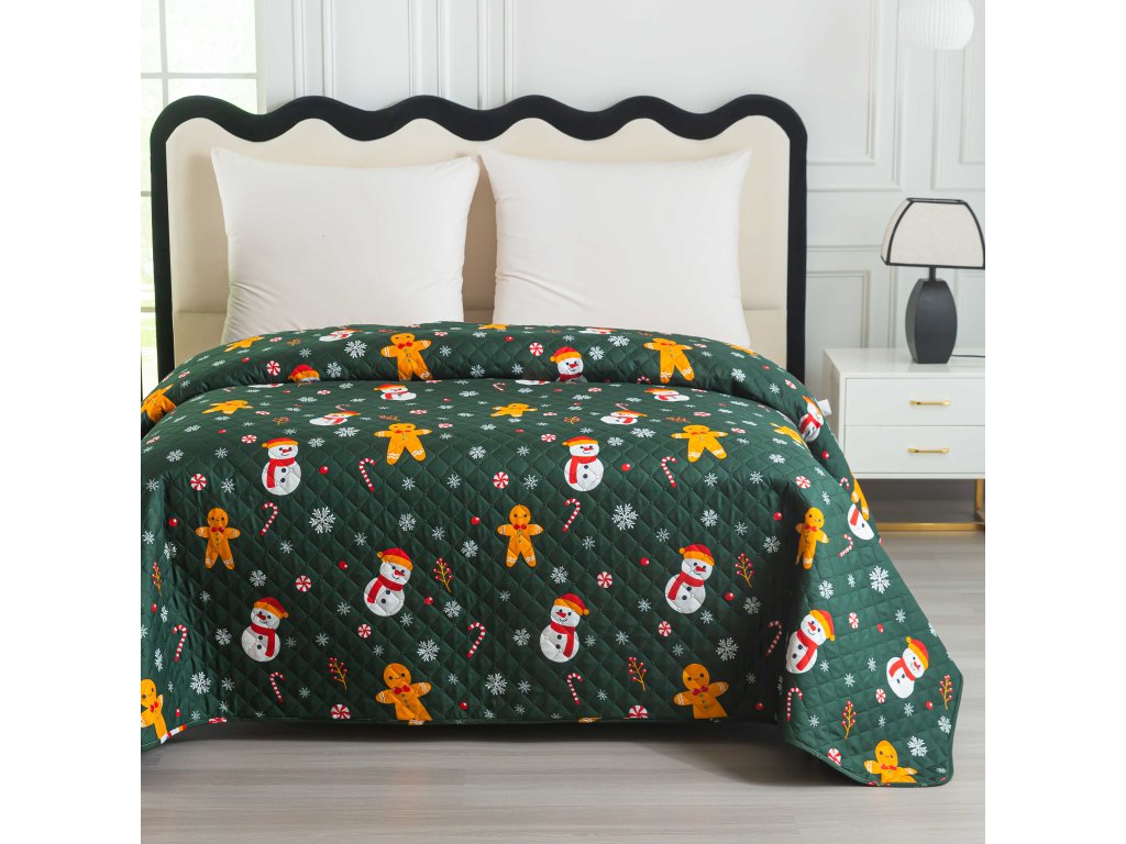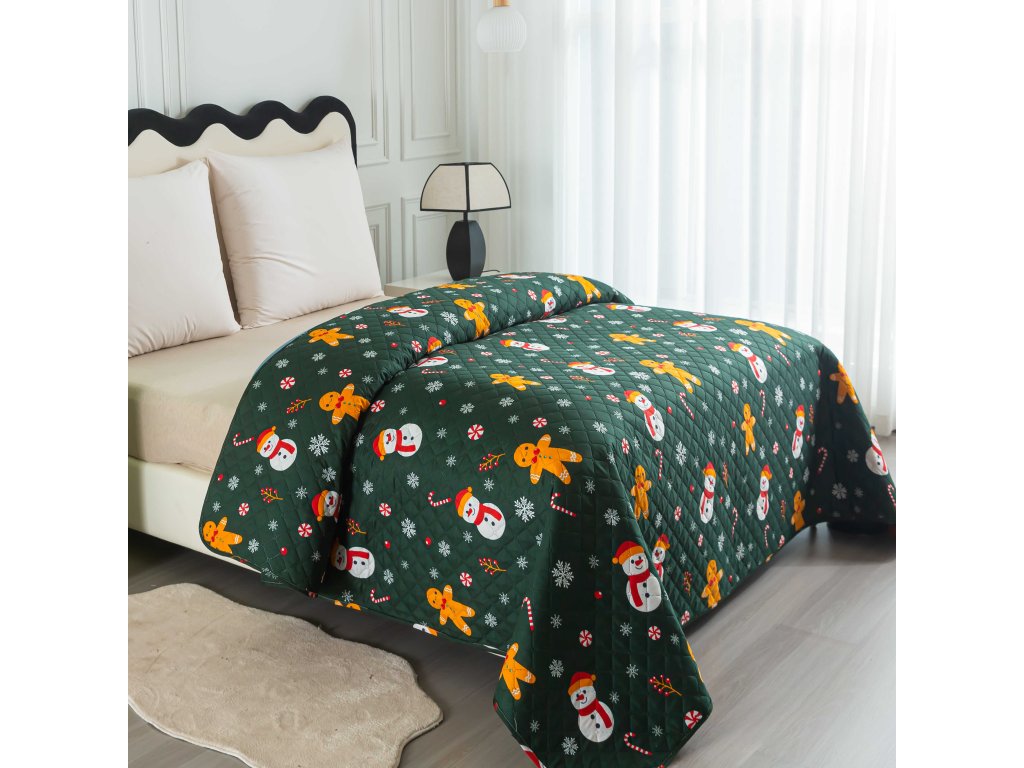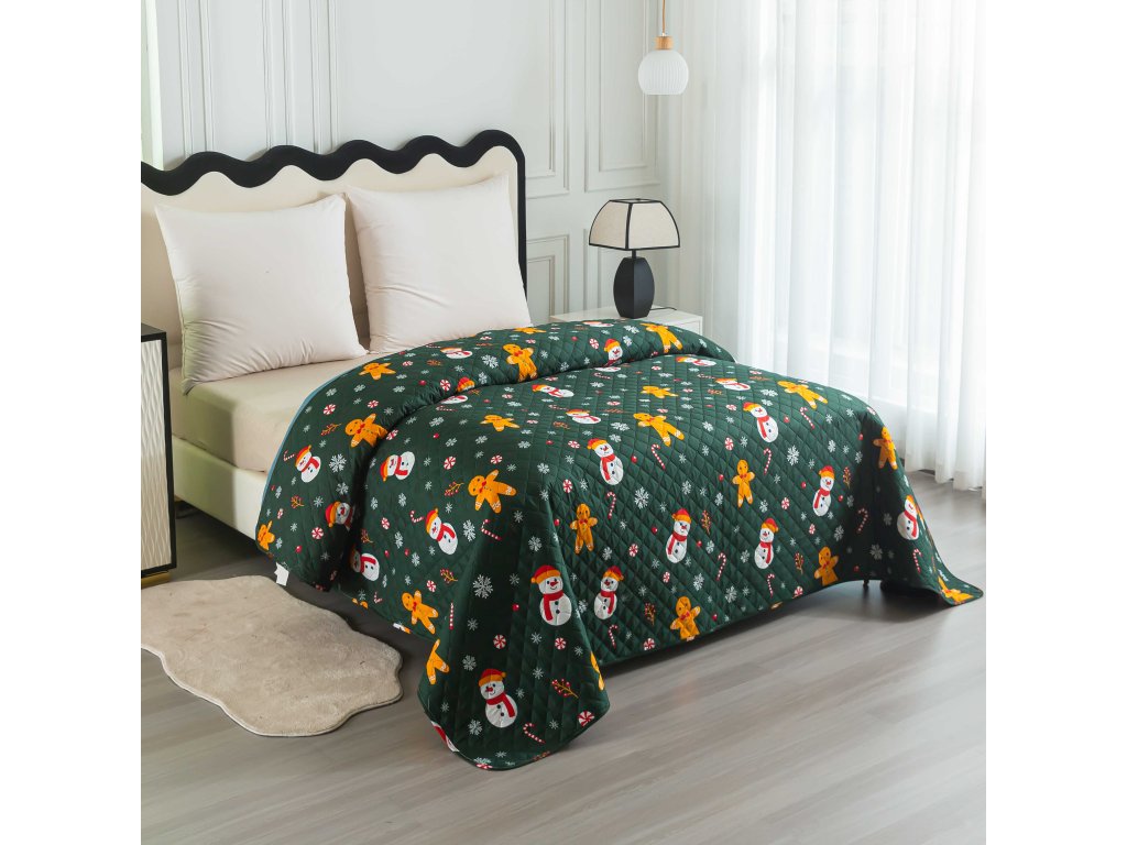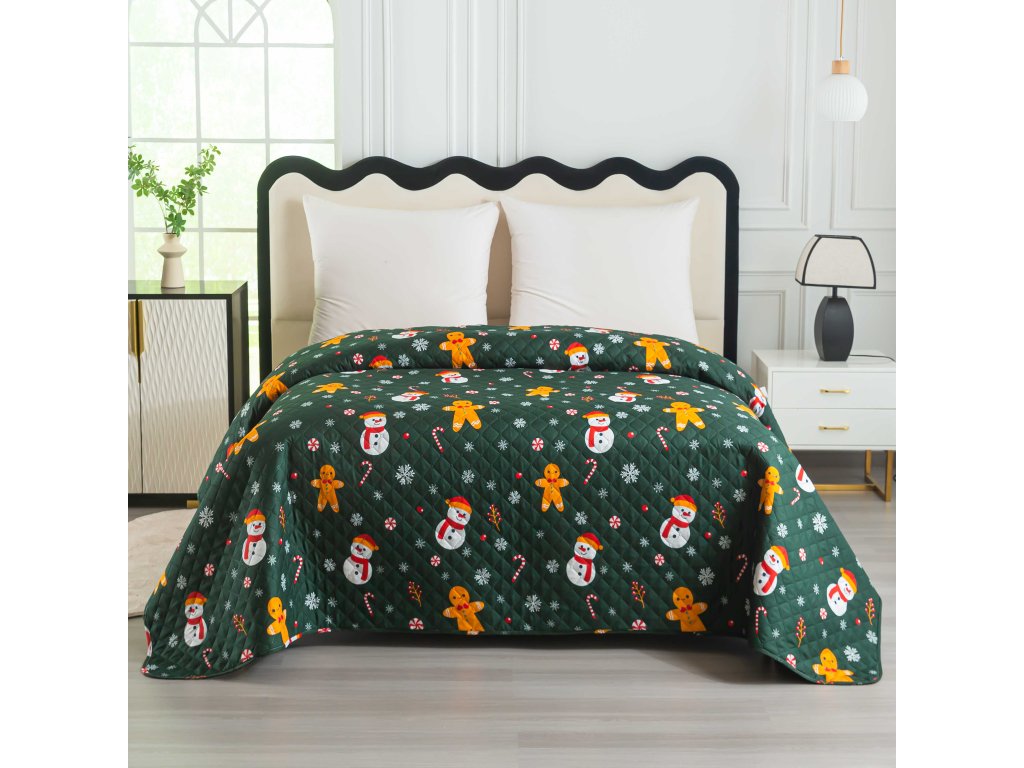Narzuta na łóżko ze wzorem SNOWMAN AND GINGERBREAD, zielona