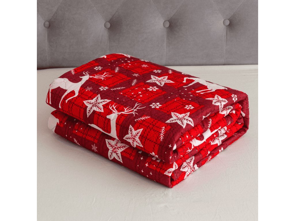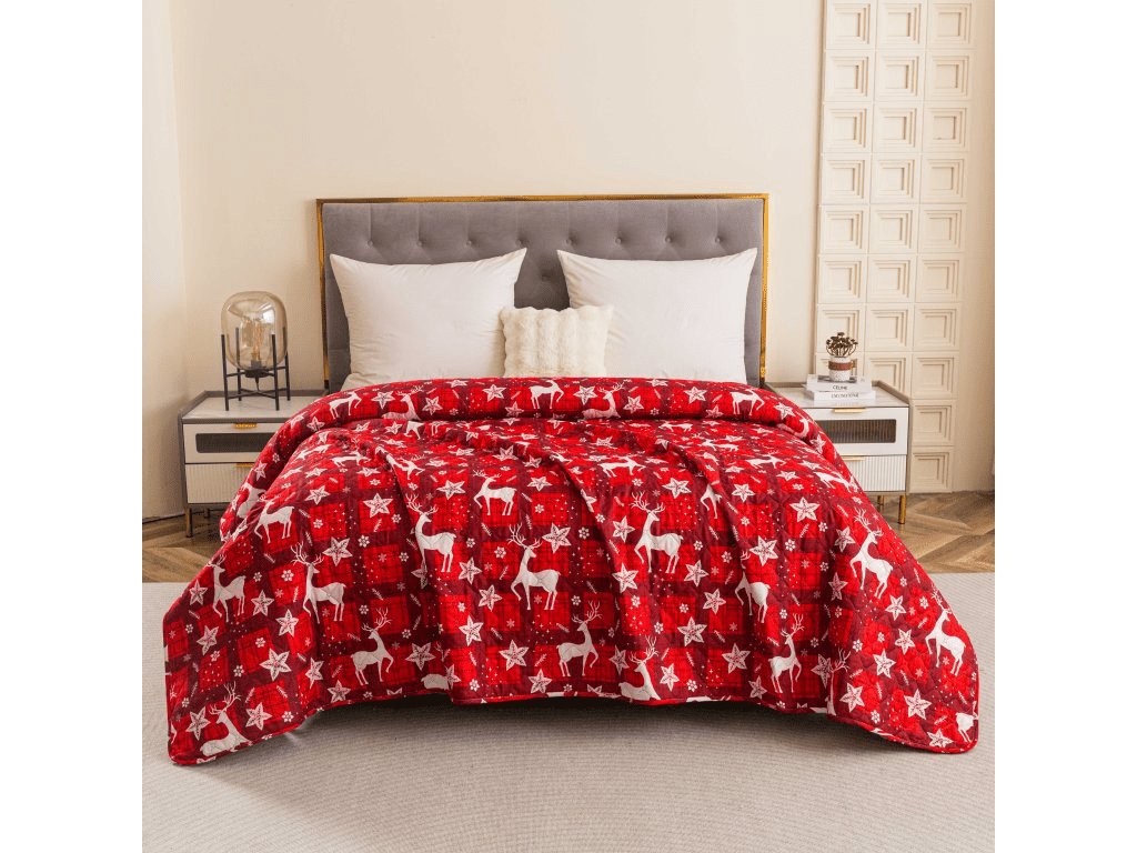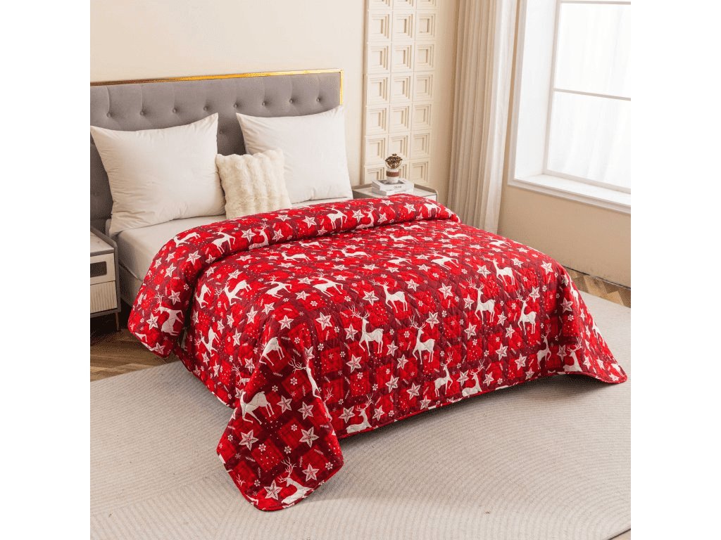 Narzuta na łóżko ze wzorem VELVET CHRISTMAS, czerwona