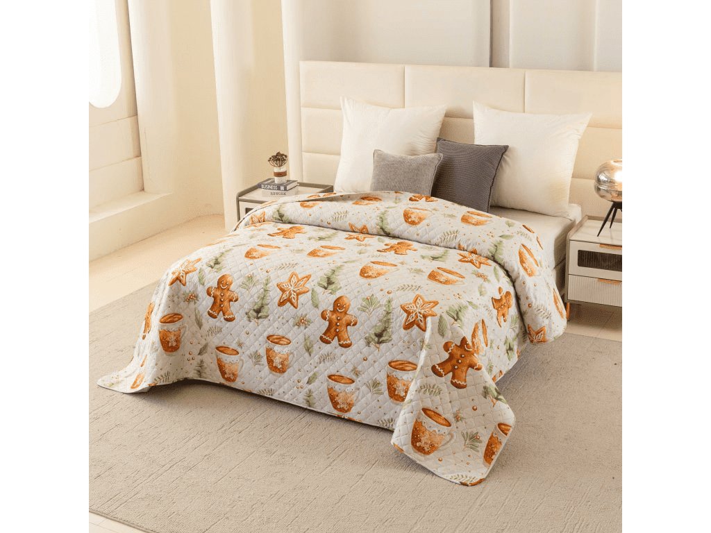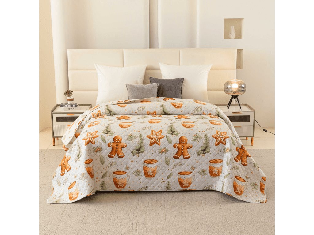 Narzuta na łóżko ze wzorem WINTER GINGERMAN, biała
