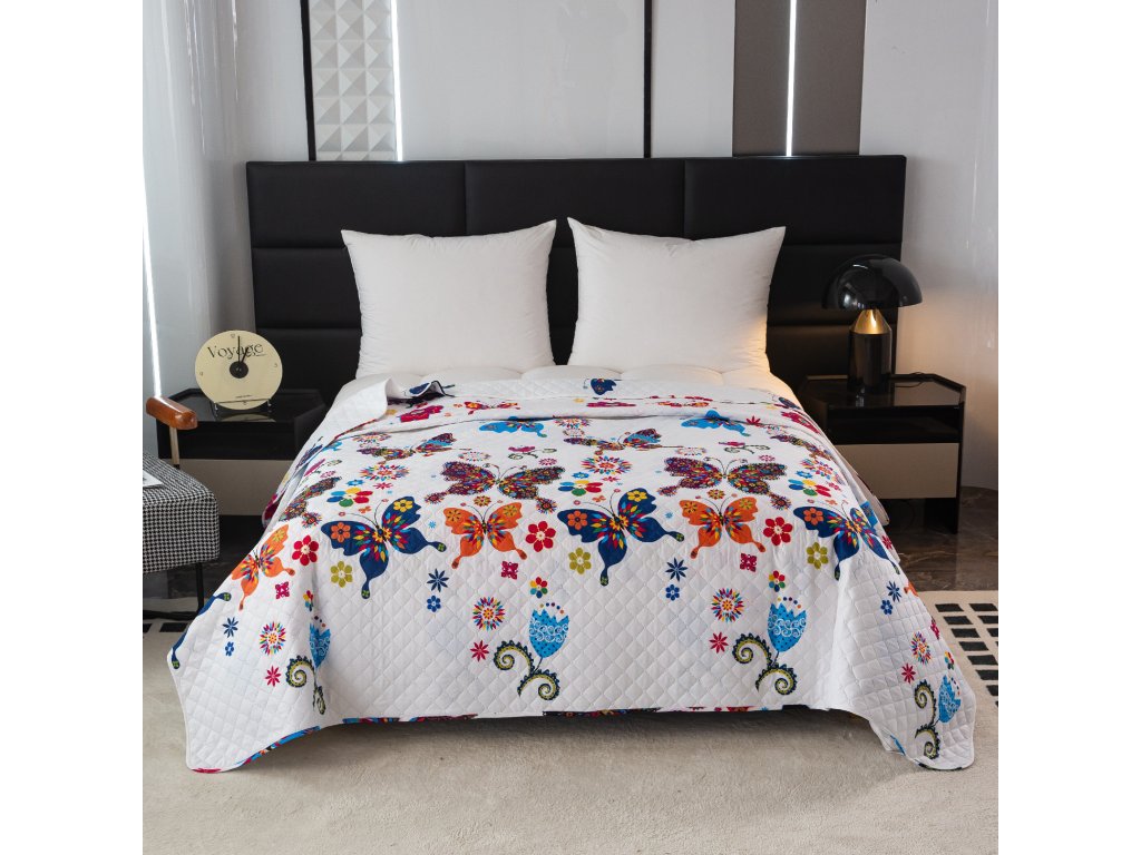 Přehoz na postel BAREVNÝ MOTÝL bílý