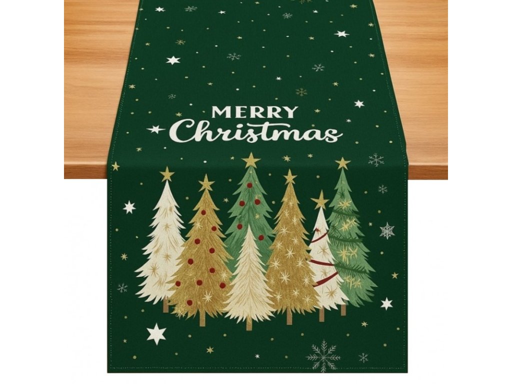 Lniany świąteczny bieżnik STARLIT TREES 33x180 cm, zielony