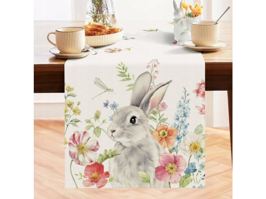 Lniany wielkanocny bieżnik FLORABBIT 33x180 cm