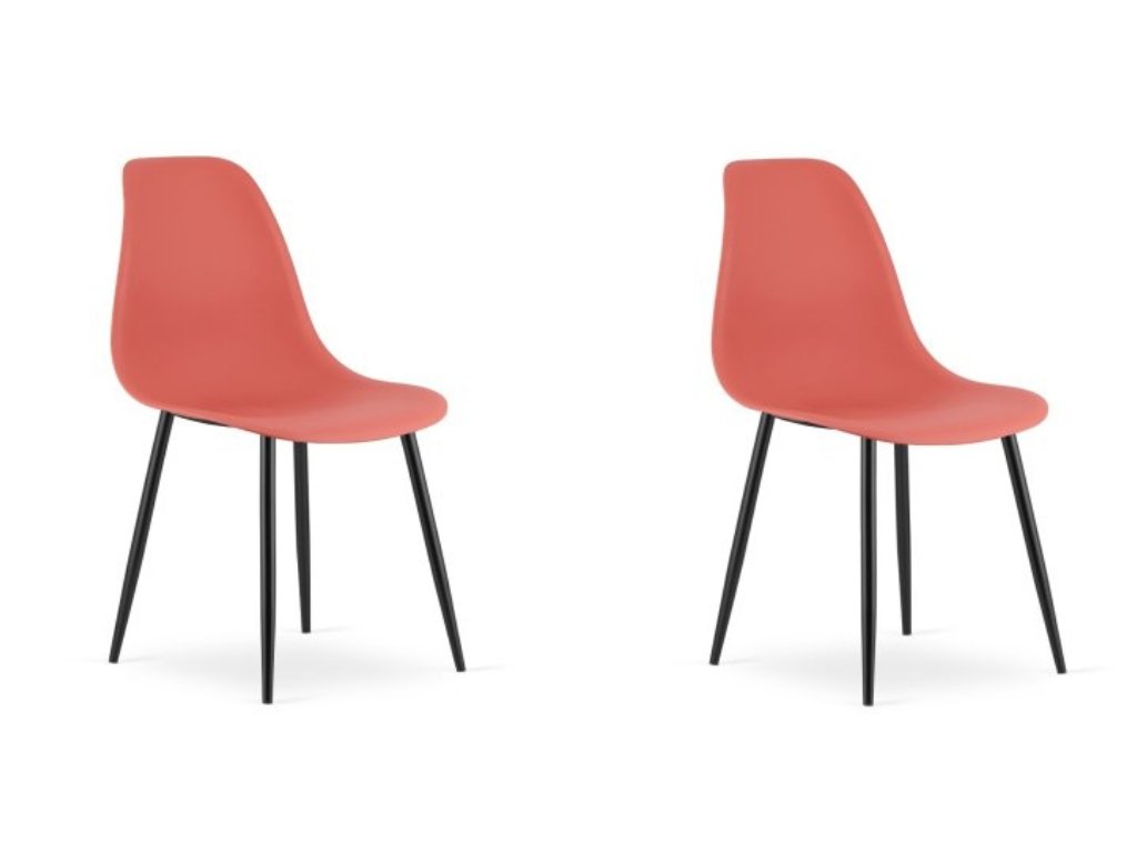 Zestaw 2 koralowych krzeseł OSAKA z czarnymi nogami