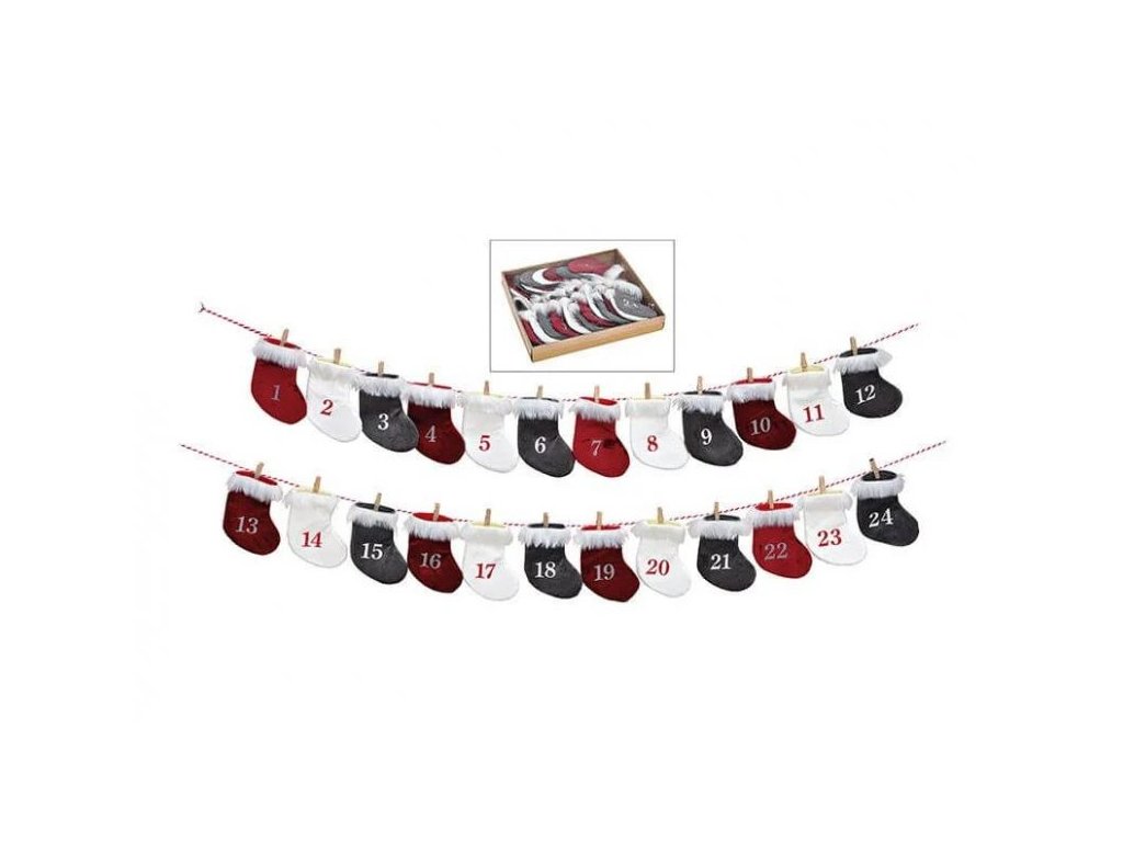 Dziecięcy kalendarz adwentowy CHRISTMAS SOCKS kolorowy, 24 sztuki