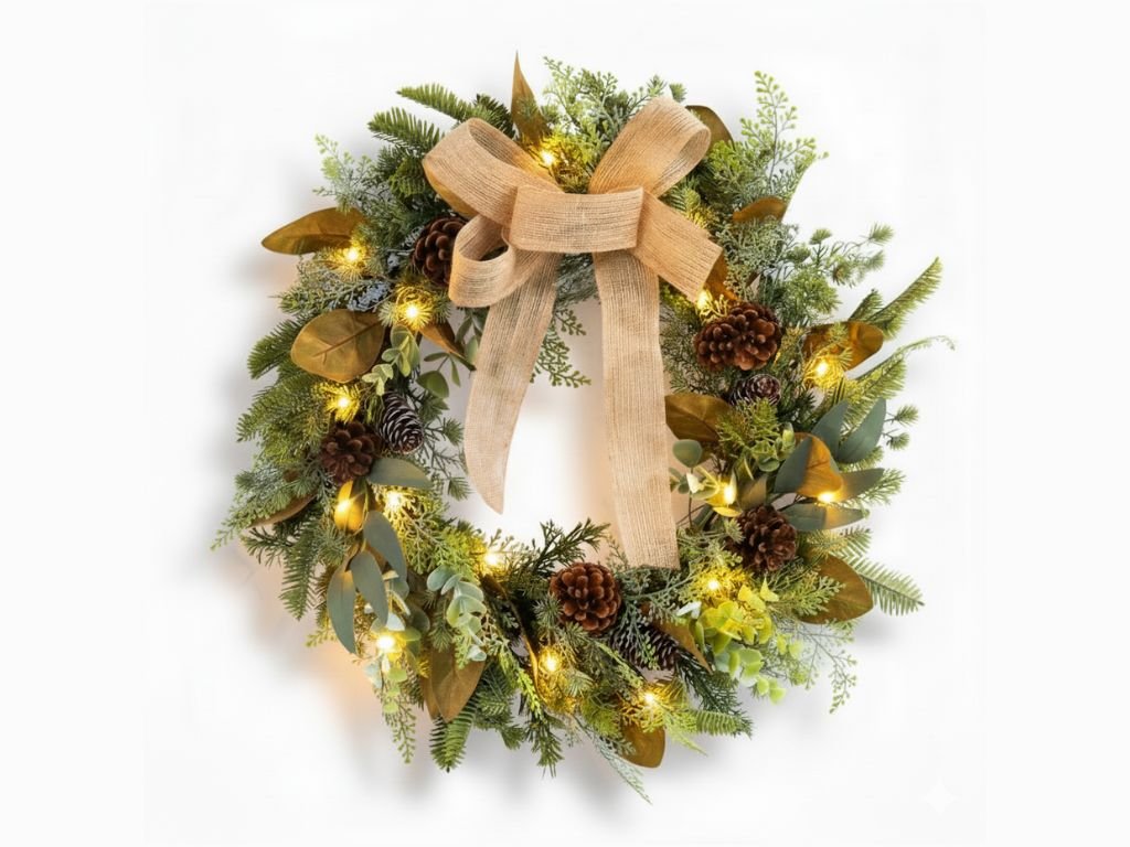 - Świąteczny wieniec odpowiedni do wnętrz i zewnętrznych dekoracji