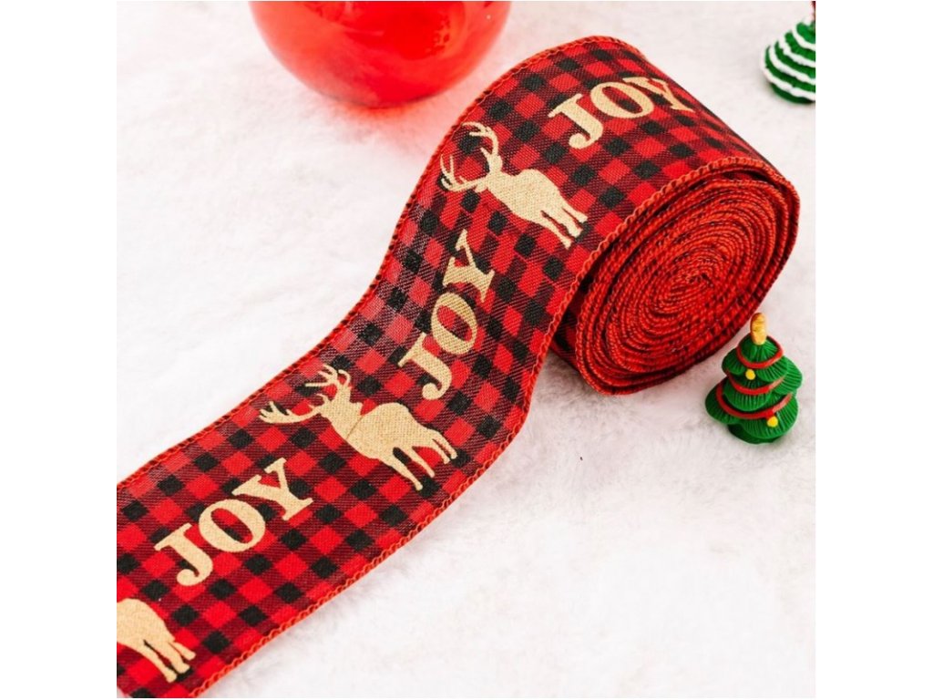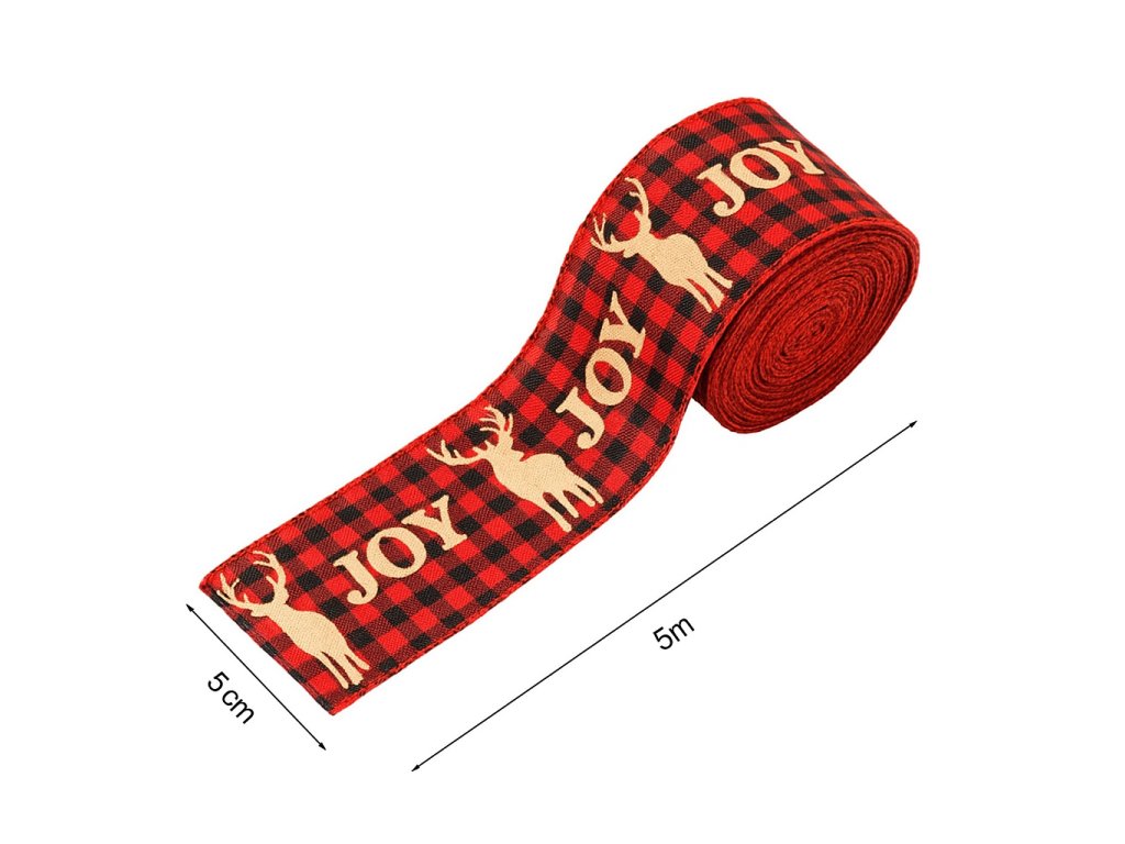 Wstążka świąteczna JOY 5 cm x 5 m, czerwona