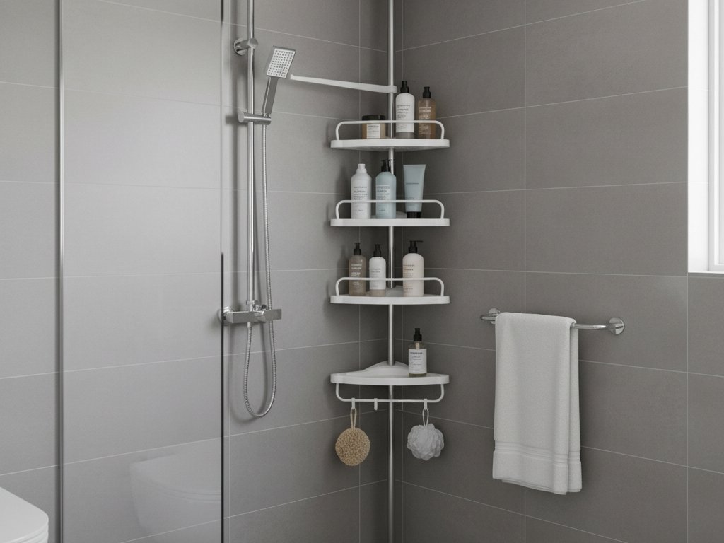Półka narożna do łazienki COMPACT teleskopowa 104-315 cm, biała