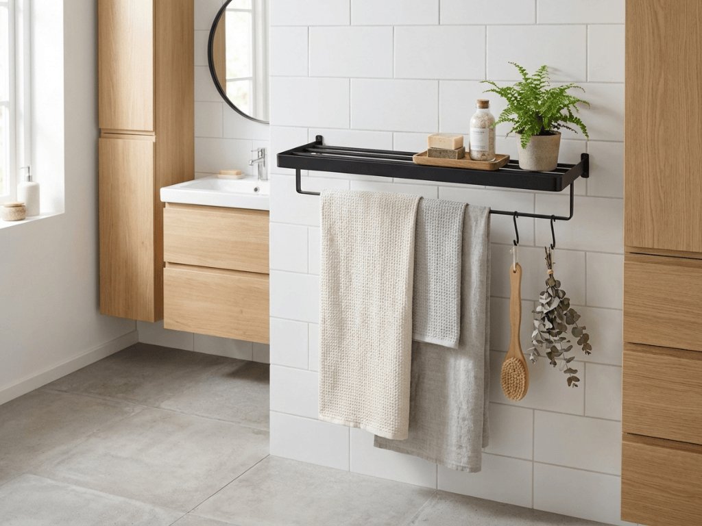 Utrzymanie porządku i organizacji w łazience nie musi być trudne – wystarczą sprytnie dobrane dodatki. Minimalistyczna półka z drążkami na ręczniki jest nie tylko praktycznym pomocnikiem, ale i elementem designu, który nada Twojej łazience nowoczesny wygląd. Wszystko, co ważne, będzie zawsze pod ręką – a jednocześnie estetycznie uporządkowane. Stwórz sobie funkcjonalną i przyjemną przestrzeń, gdzie każdy detal spełnia swoją rolę i przyczynia się do ogólnej harmonii. Nawet mała zmiana, jak nowa półka, może znacząco uprościć codzienną rutynę i wnieść do Twojego domu więcej komfortu i stylu.