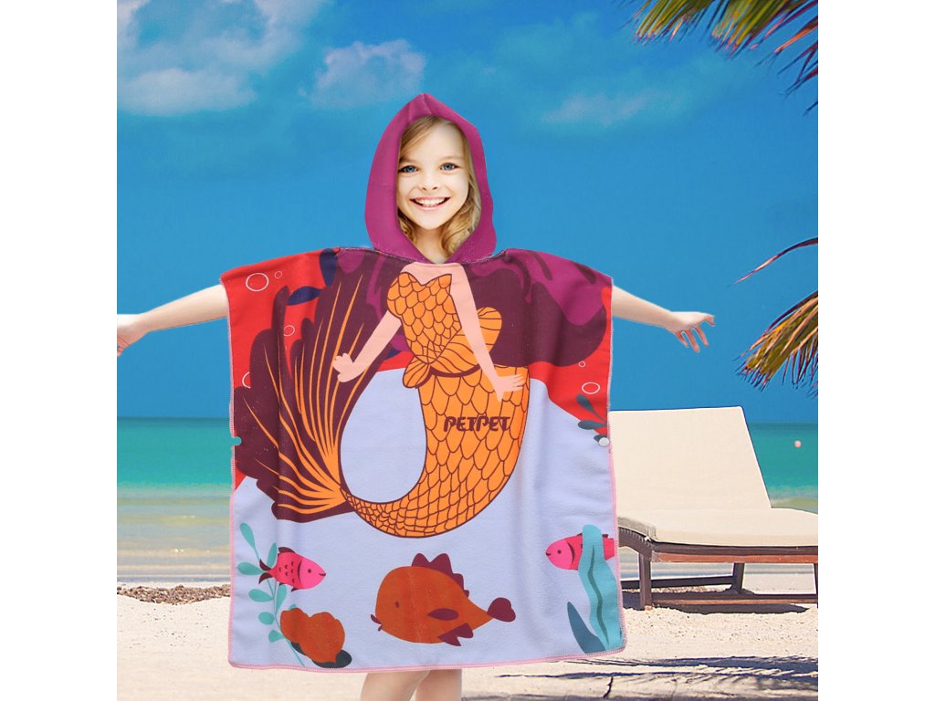 Ponczo dziecięce SYRENKA MARINA niebiesko-szare 60 x 90 cm