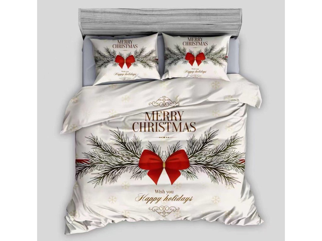 3D Bawełniana pościel WISH YOU HAPPY HOLIDAYS kremowa, 100% bawełna