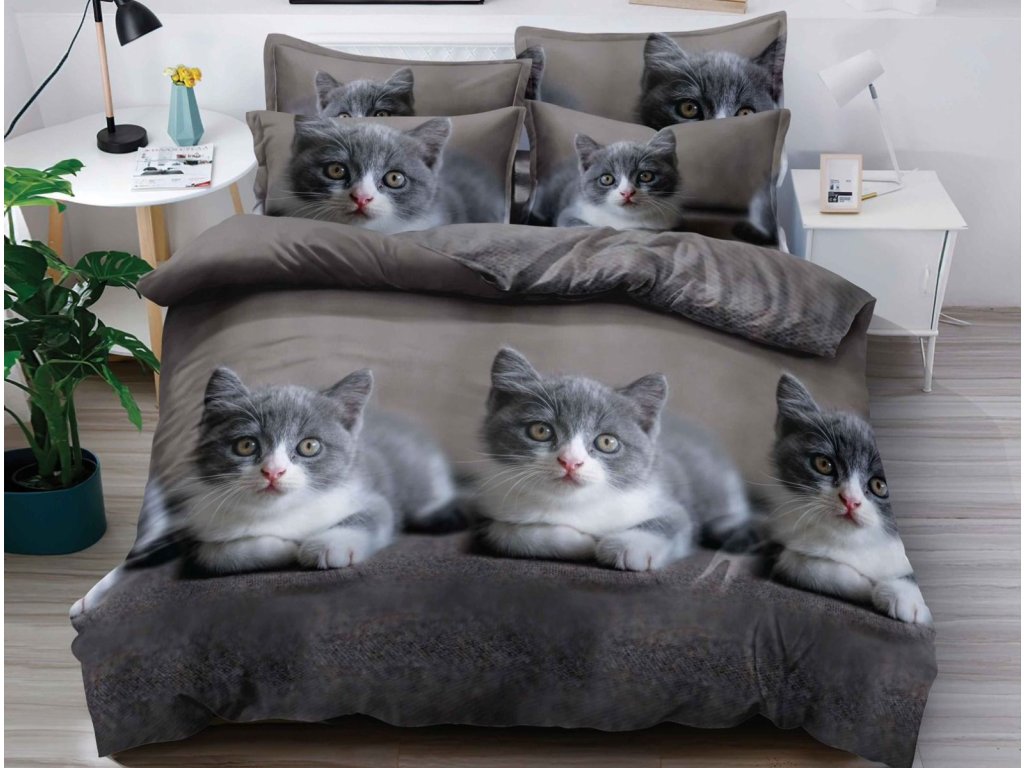 3D pościel z mikrofibry KITTEN CUDDLE szare